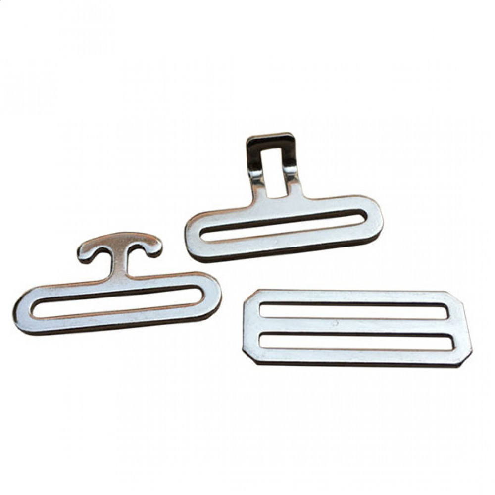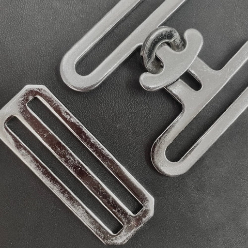 Стальная пряжка специальной конструкции и двухщелевая рамка. Такие пряжк используют при изготовлении конной амуниции - попон для лошадей (подпузных ремней, удлинителей, расширителей для попон и т.л.) Причина уценки: потертости на поверхности