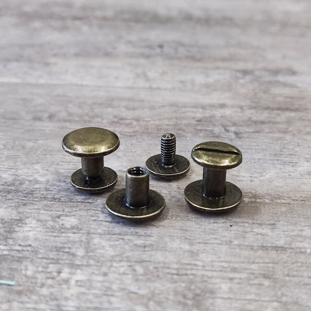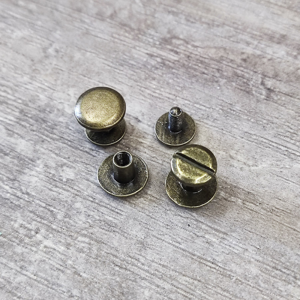 Ременные винты из латуни используются при изготовлении ремней, саквояжей, браслетов и других изделий из кожи