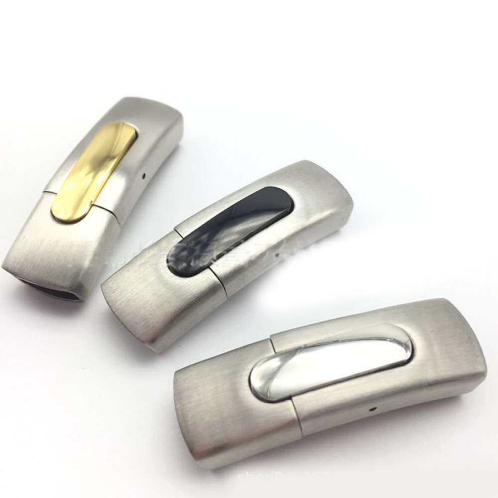 Замок магнитный из нержавеющей стали с покрытиями разных цветов - для плоских кожаных шнуров 11х5 мм. Габариты магнитной застежки для браслетов 41х12 мм.