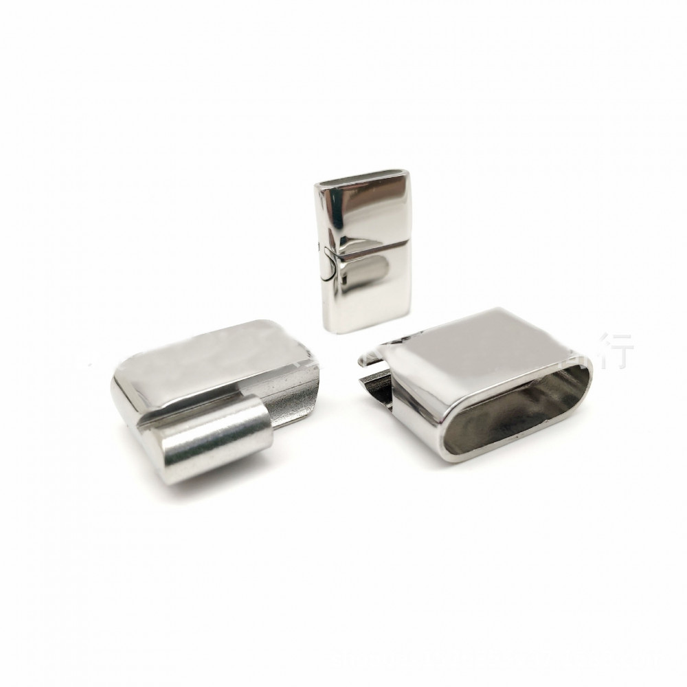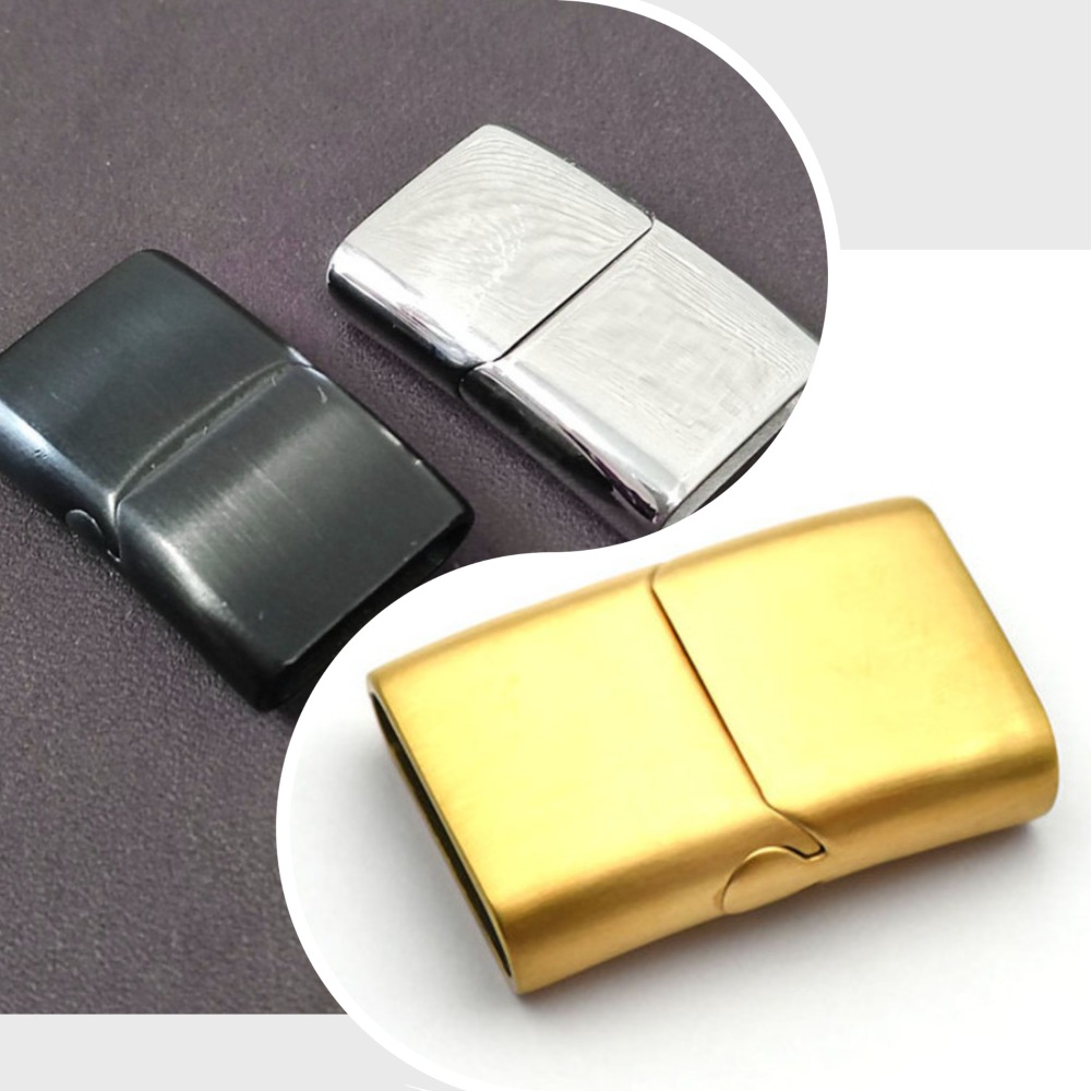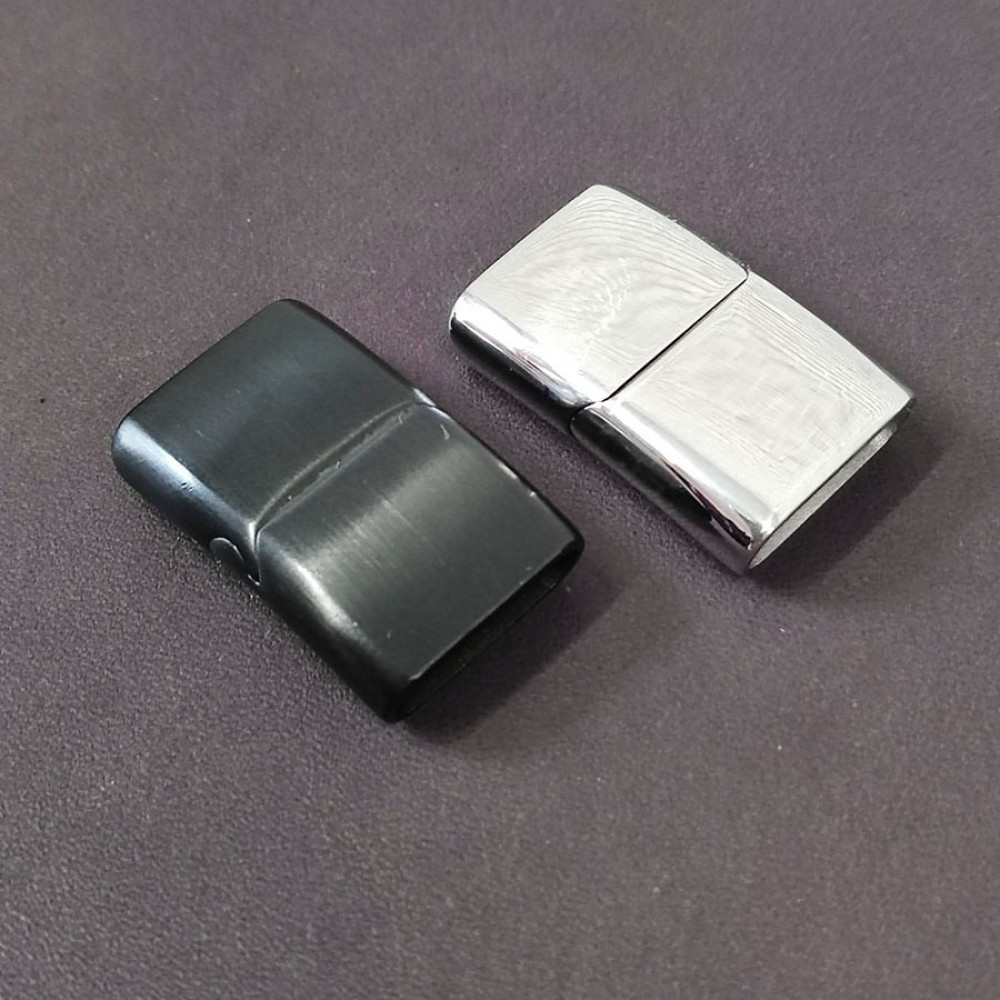 Замок магнитный из нержавеющей стали с покрытиями разных цветов - для плоских кожаных шнуров 16х5 мм. Габариты застежки 26х18 мм