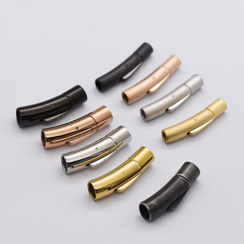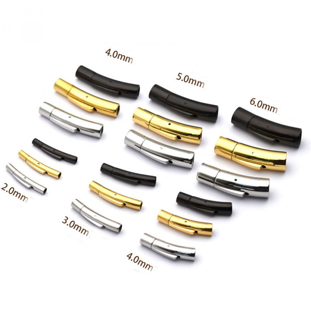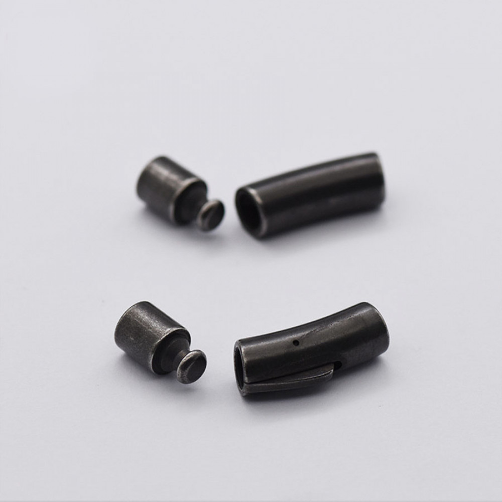 Замок из нержавеющей стали с узкой кнопкой (защелкой) - для кожаных шнуров диаметром 2 мм, 3 мм, 4 мм, 5 мм, 6 мм, 8 мм. Гладкая матовая поверхность