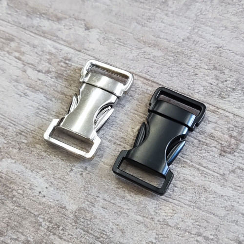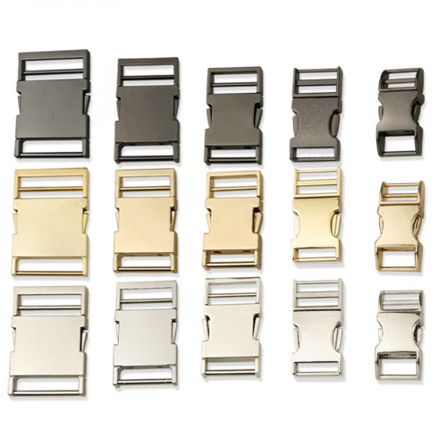 Пряжка типа фастекс, с одной стороны двухщелевая "рамка" в цветах под никель/серебро, золото, черно-..