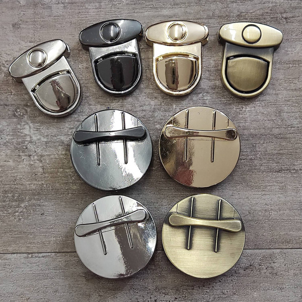 Металлические замки для барсеток, портфелей и сумок, цвет под золото, серебро, темная латунь, серо-черный