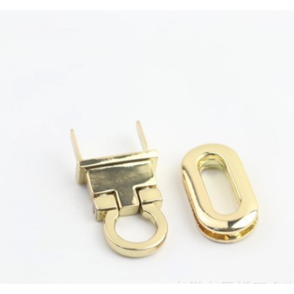 Металлическая декоративная застежка-клипса для сумок поворотного типа, с "колечком". Цвета под золото, серебр/никель, темная латунь, черно-серый.