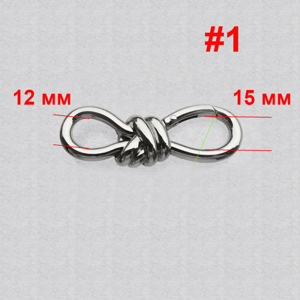 #1 - в виде цифры "восемь" с карабином. Размер 75х25 мм. Толщина прутка 5 мм