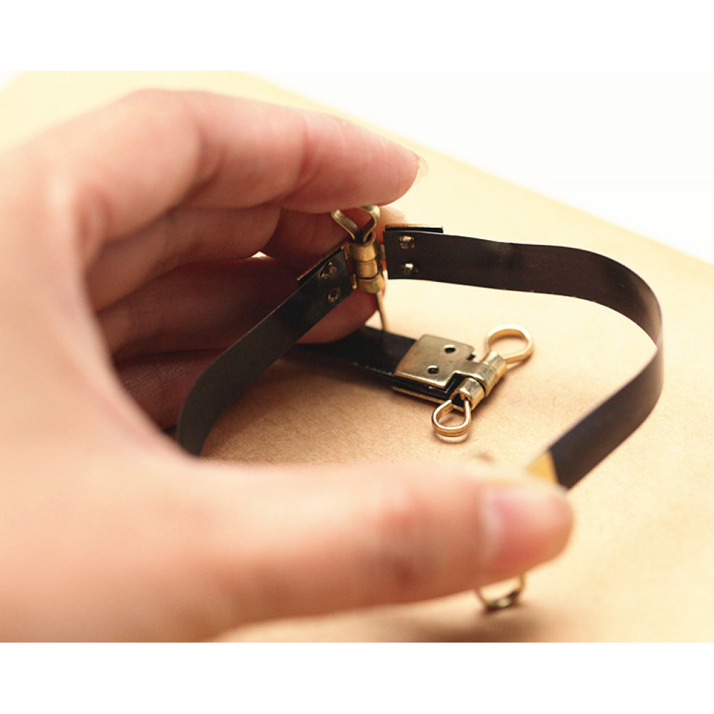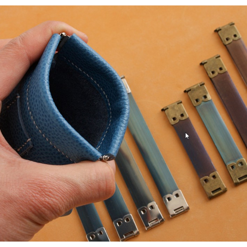 Применяется как незаметная застежка для небольших кошельков, очешников, косметичек, клатчей. Продевается внутрь верхнего края деталей.