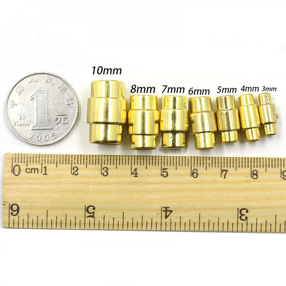 Застежка классической цилиндрической формы на шнуры круглого сечения диаметром около от 3 до 10 мм.