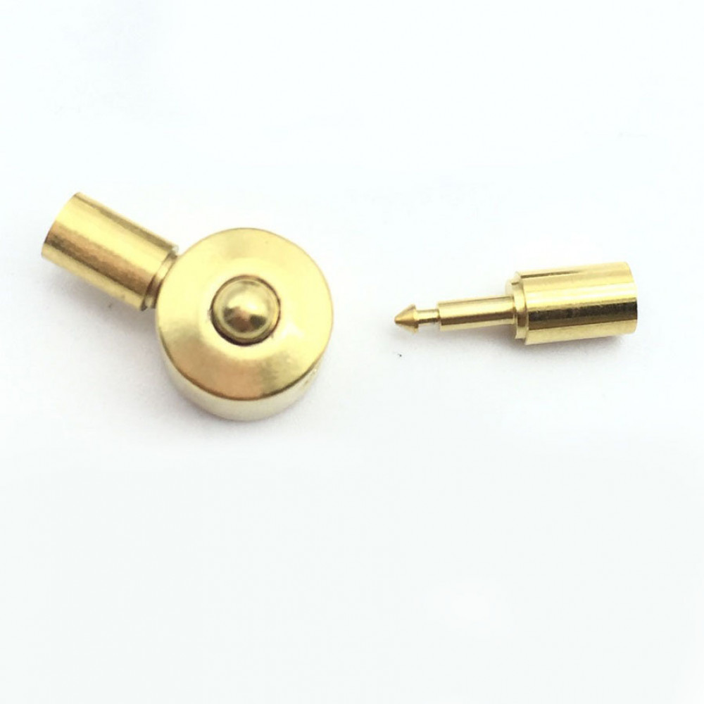 Замок для браслета, чокера в виде цилиндра на шнур круглого сечения диаметром около 3 мм, внешний размер - 22х9 мм. С одной стороны в застежке есть отверстие для вклеивания шнура, с другой стороны отверстие для вклеивания второго конца шнура. Замочек открывается нажатием на кнопочку.