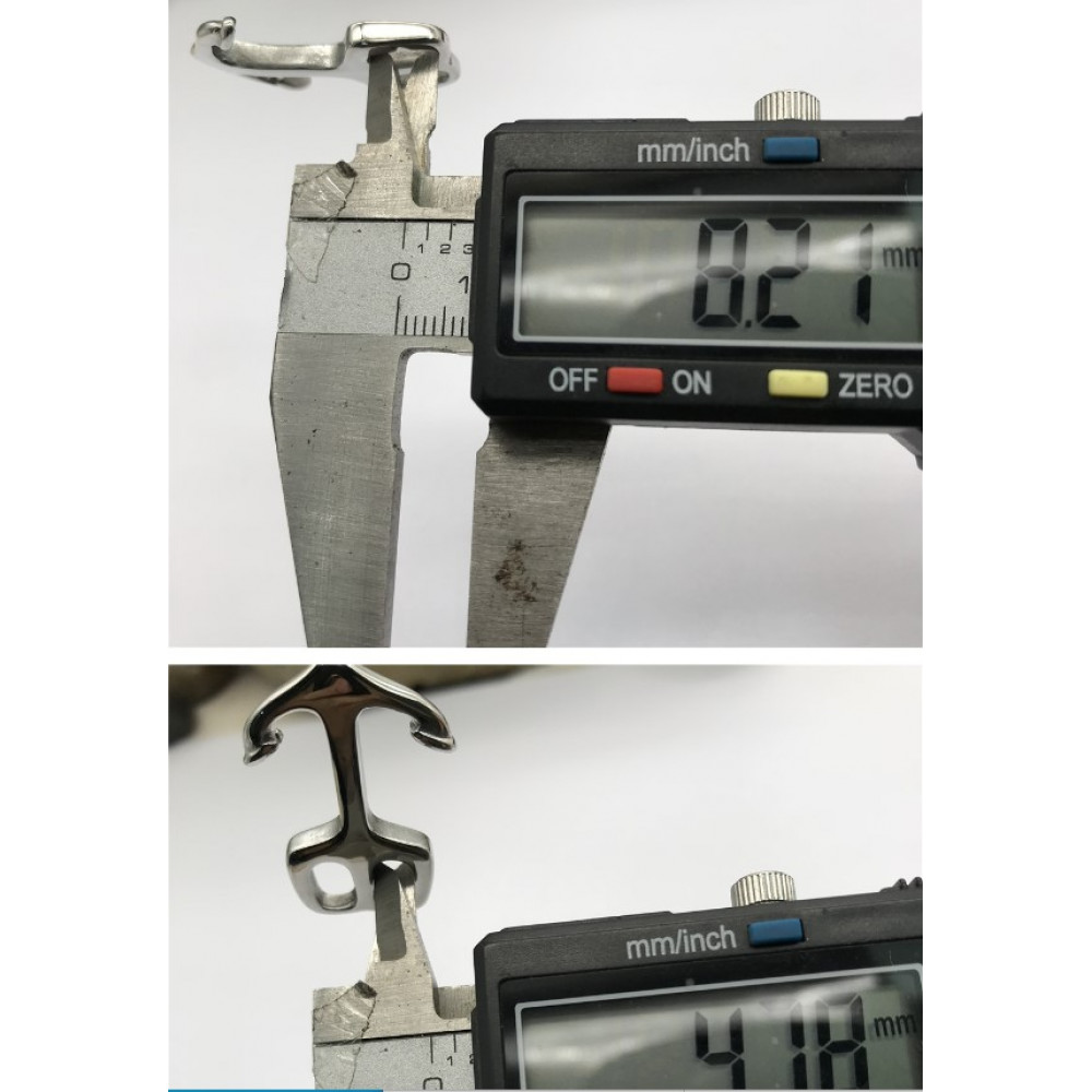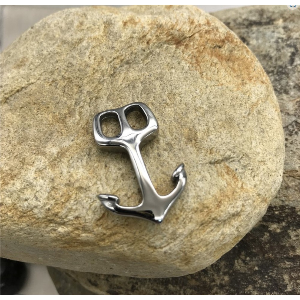 Замок из нержавеющей стали для кожаных шнуров диаметром до 4,5 мм. Стальной замок на два шнура в морском стиле - в виде массивного якоря