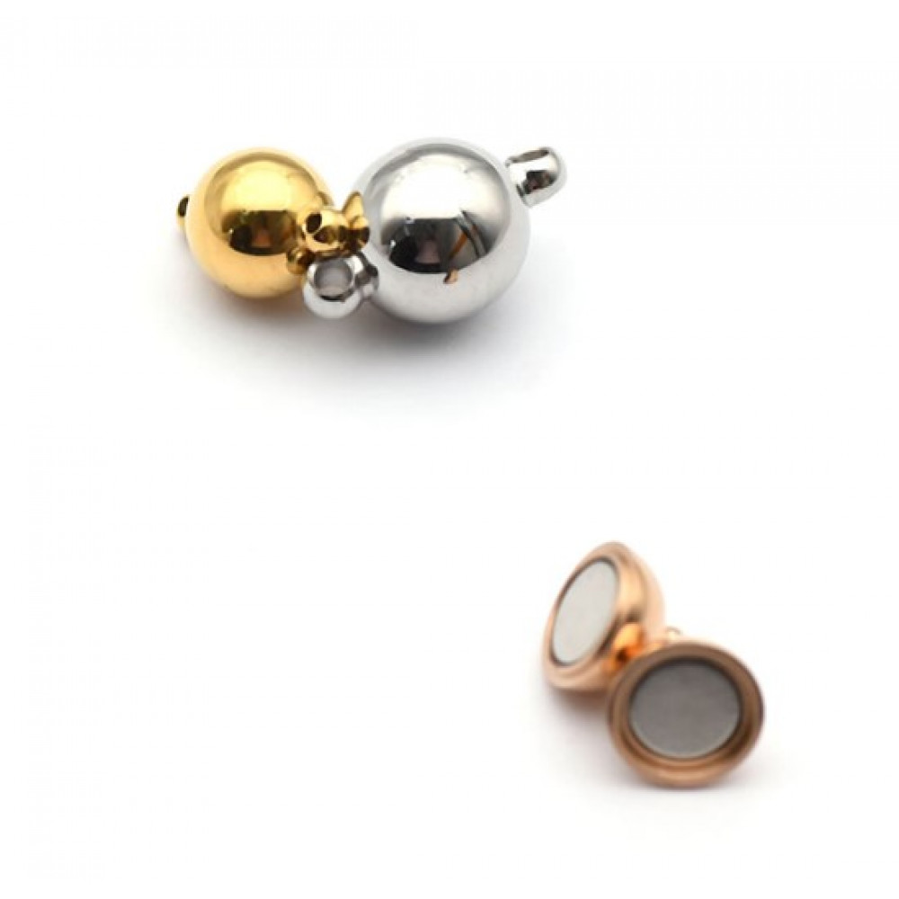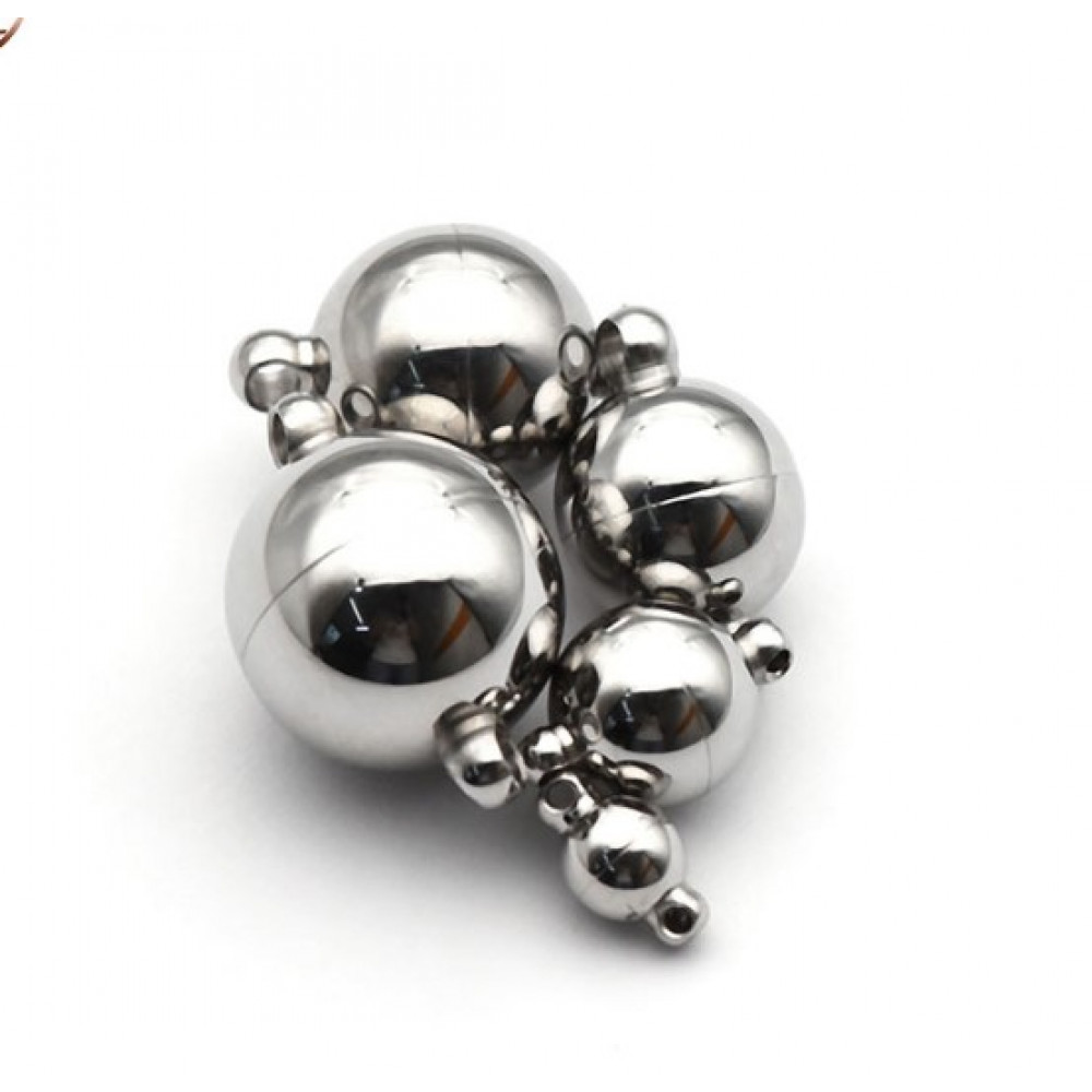 Застежка магнитная - диаметр шарика 6 мм, 8 мм, 10 мм, с "петельками" диаметра 1,2 мм для шнура -1мм