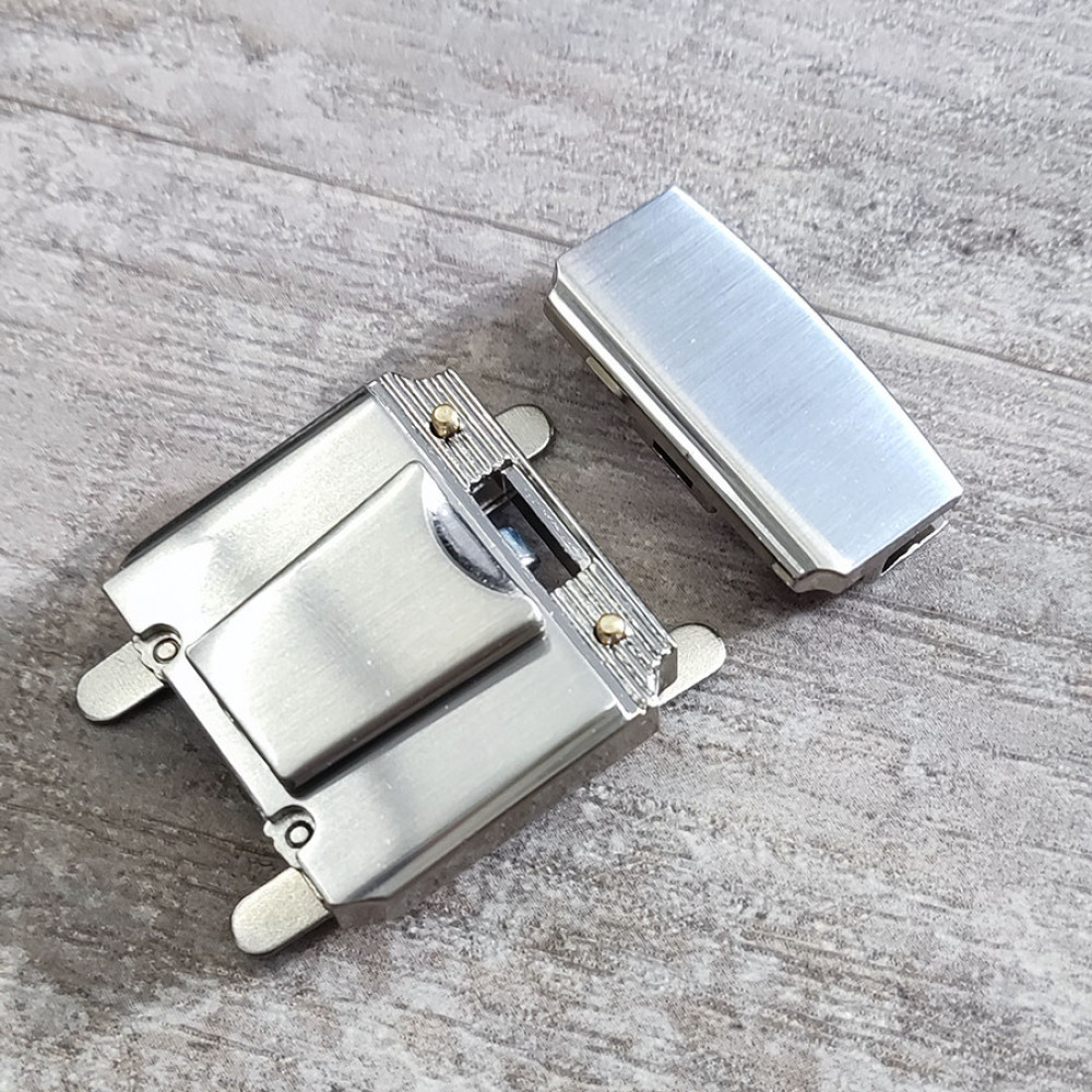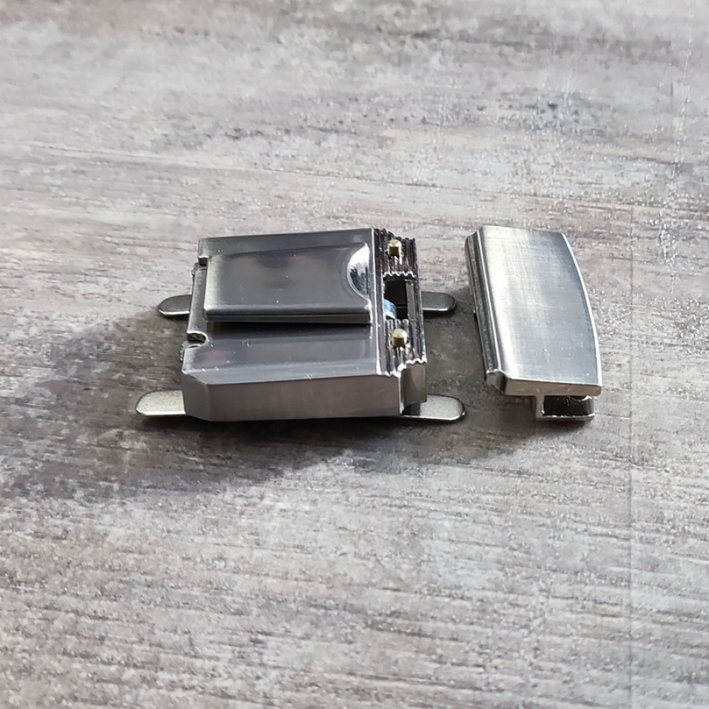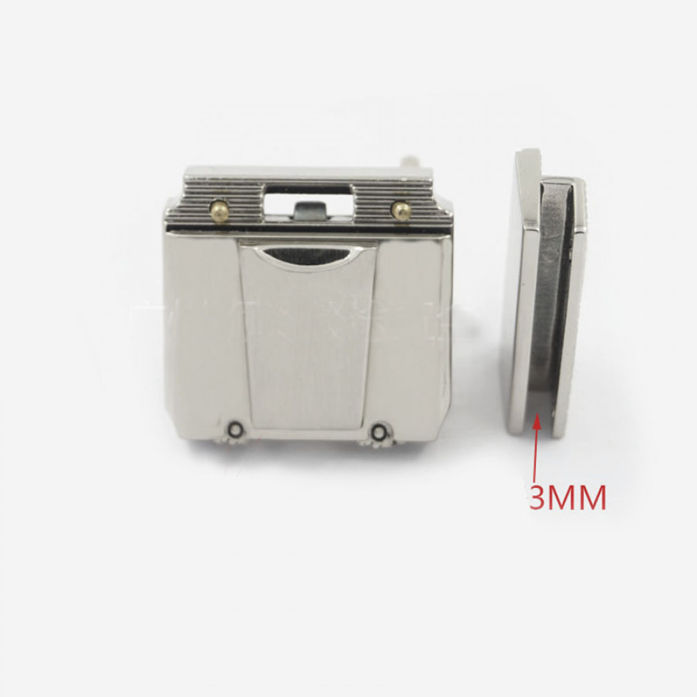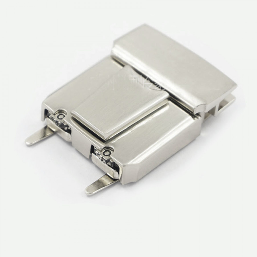 Металлическая декоративная застежка портфельного типа для галантерейных изделий.
