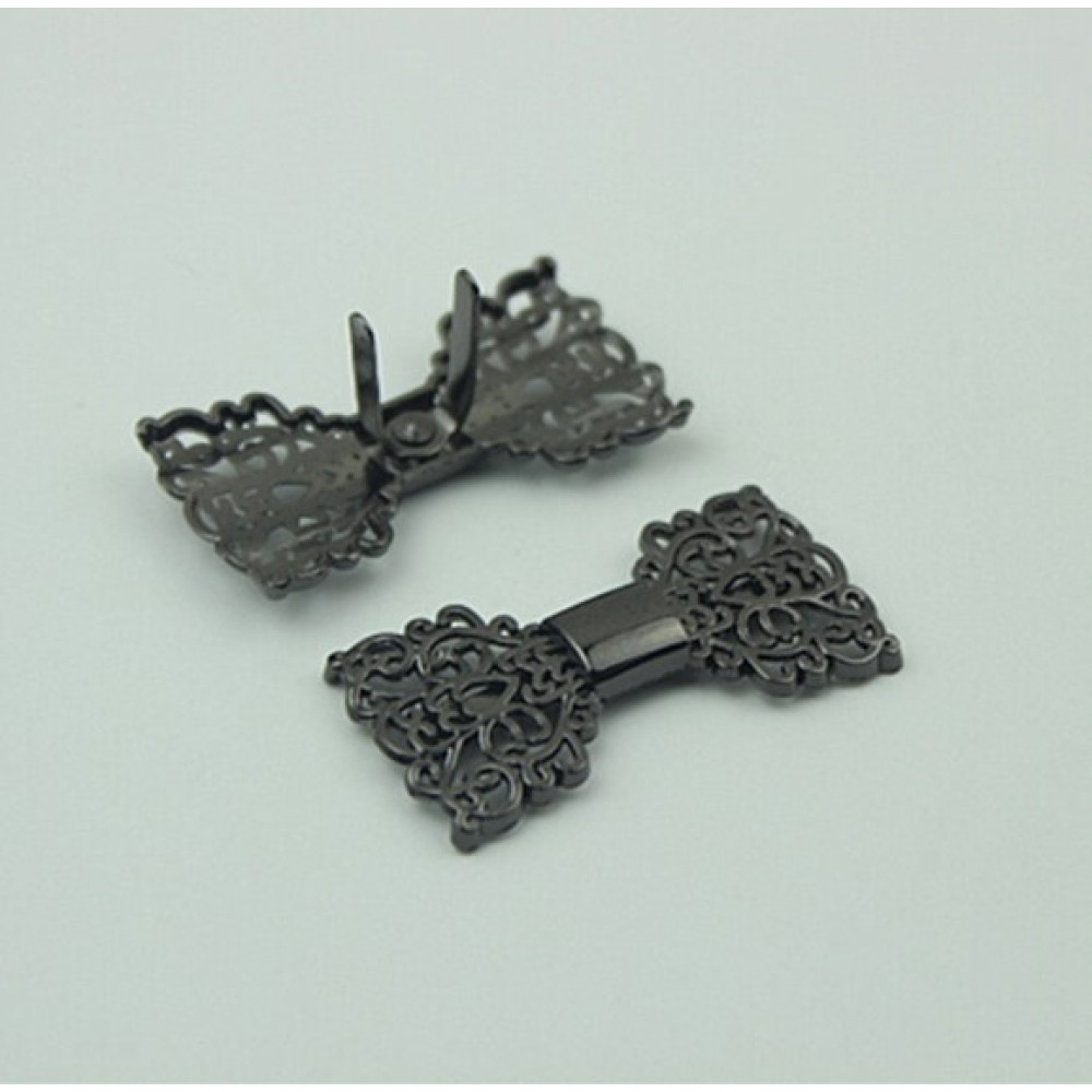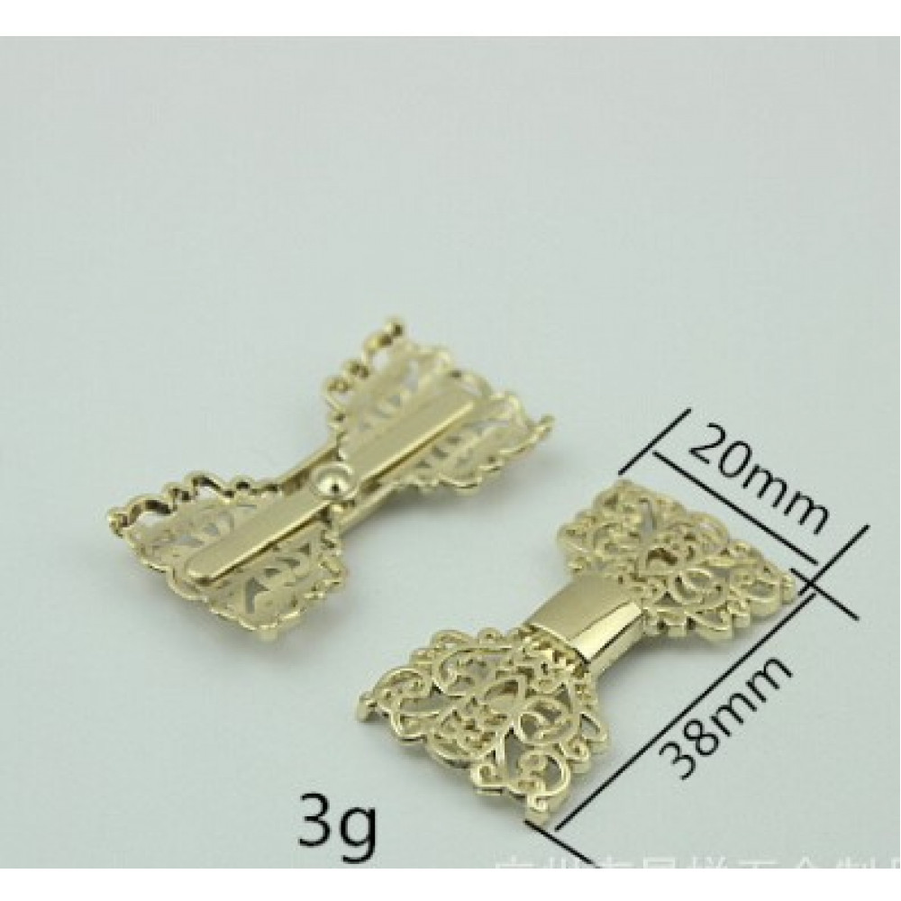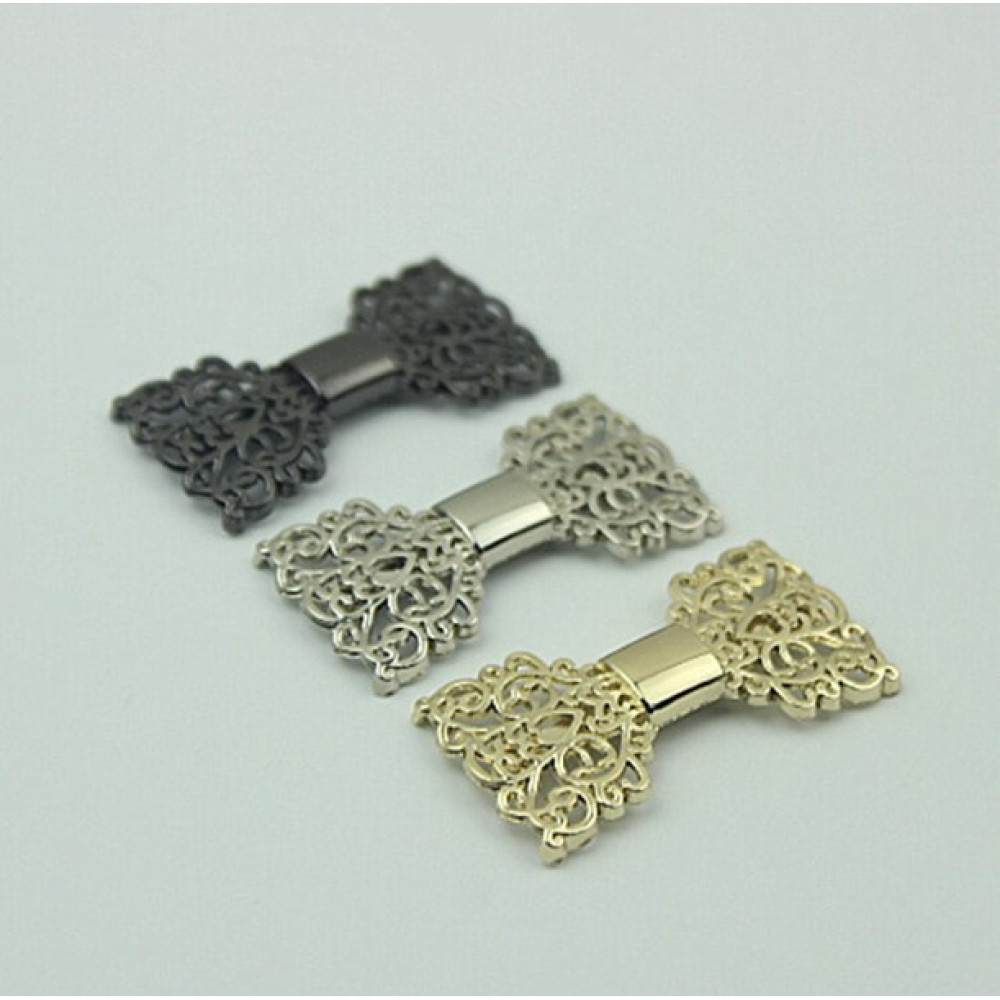 Металлическое украшение для кожи - декоративный зажим в форме ажурного бантика. Подойдет для декора обуви, сумок и других галантерейных изделий