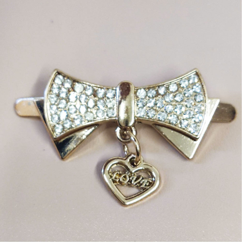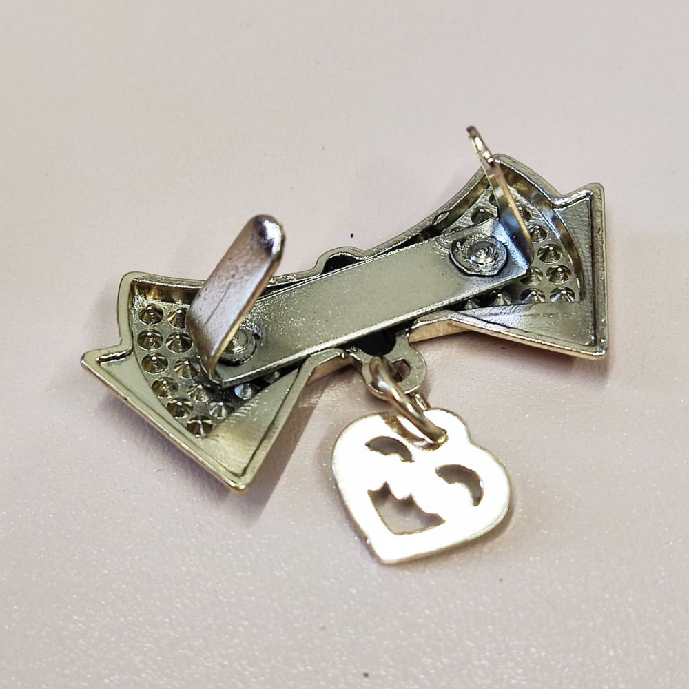 Металлическое украшение для кожи - декоративный зажим в форме бантика со стразами. Подойдет для декора обуви, сумок и других галантерейных изделий