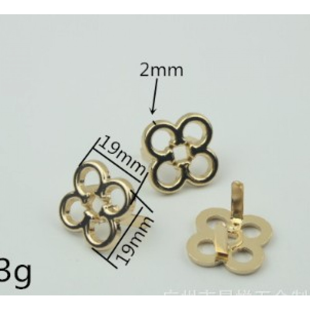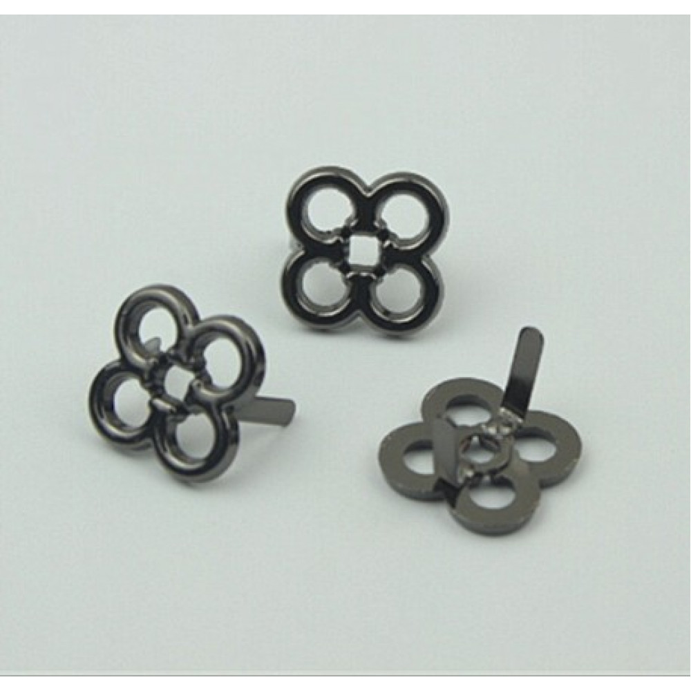 Металлическое украшение для кожгалантерейных изделий - декоративный зажим в виде четырехлистника