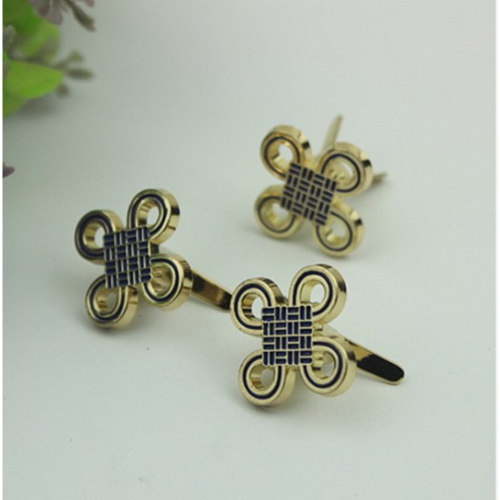 Металлическое украшение для кожгалантерейных изделий - декоративный зажим в виде четырехлистника "на подставке" (детали - на дополнительных фото)