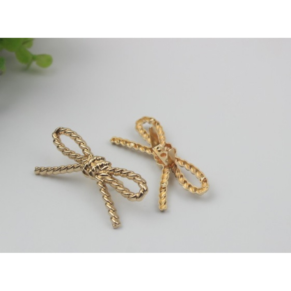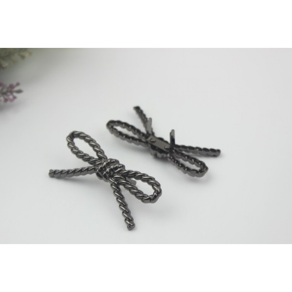 Металлическое украшение для кожи - декоративный зажим в форме плетеного бантика.