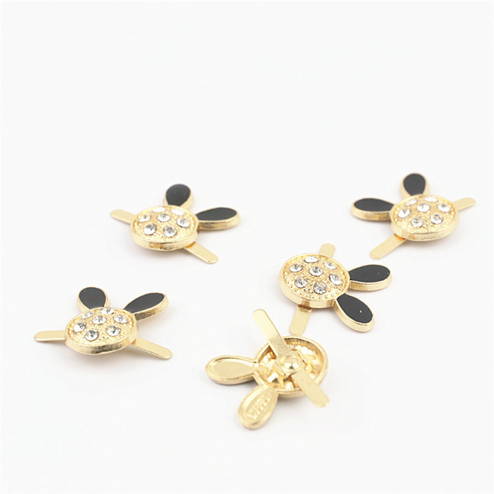 Металлическое украшение для кожи - декоративный зажим в виде головы Микки со стразами, с ушками, покрытыми черной эмалью.