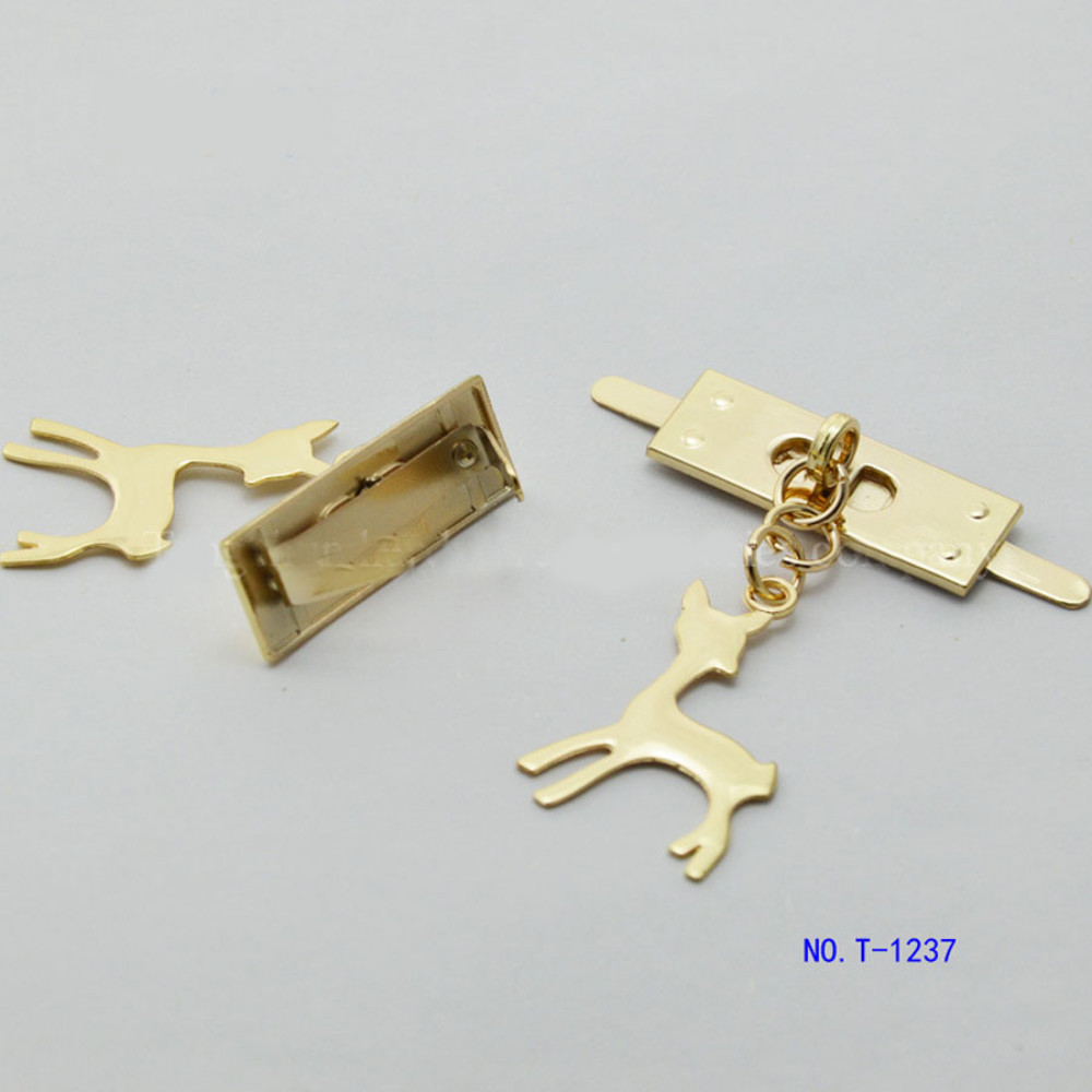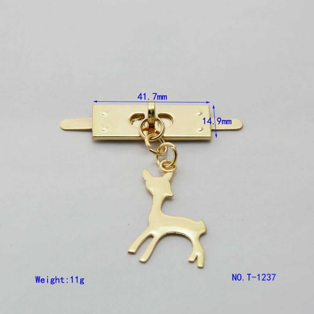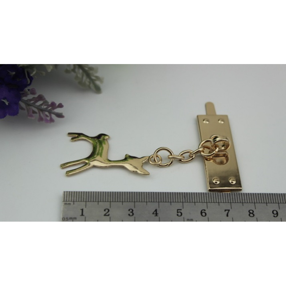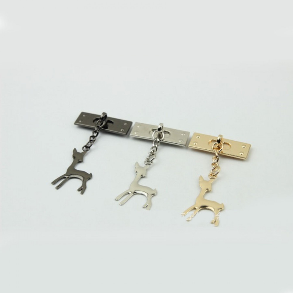 Металлическое украшение для кожи - декоративный зажим в виде олененка подойдет для дамской или детской сумочки.