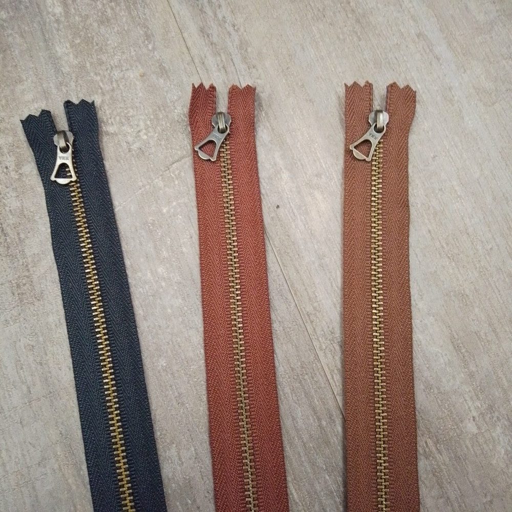 Высококачественная металлическая молния №3 (ширина звена молнии в закрытом состоянии 3мм). Длина 30 см, зубья под бронзу
