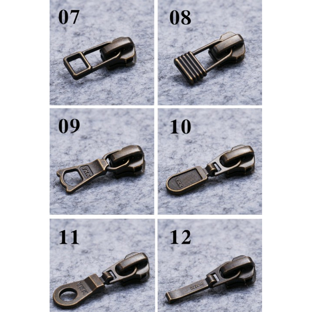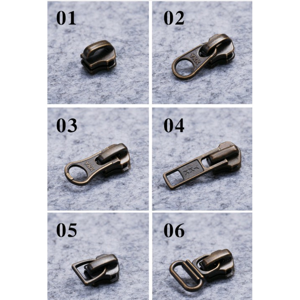 Бегунок, зажимы, ограничители для молнии №5 YKK под бронзу