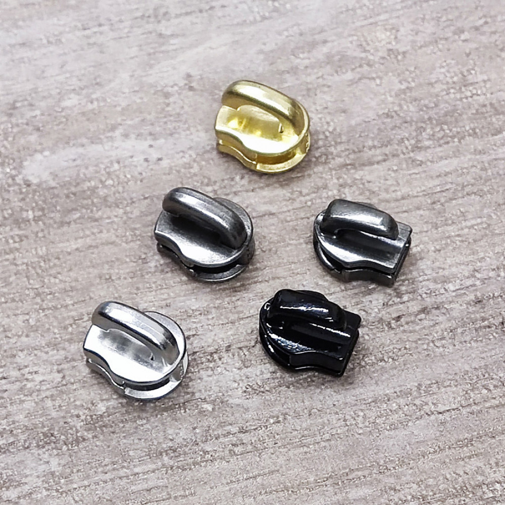 Бегунок - металлическая фурнитура для молний от производителя YKK. В зависимости от поставки могут быть разной формы (см. на фото)