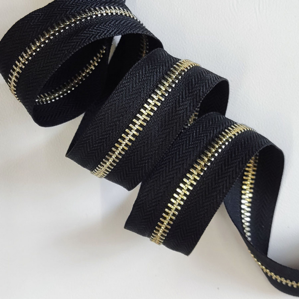 Рулонная металлическая двухстороняя молния №5 (ширина звена молнии в закрытом состоянии 5,8 мм).
