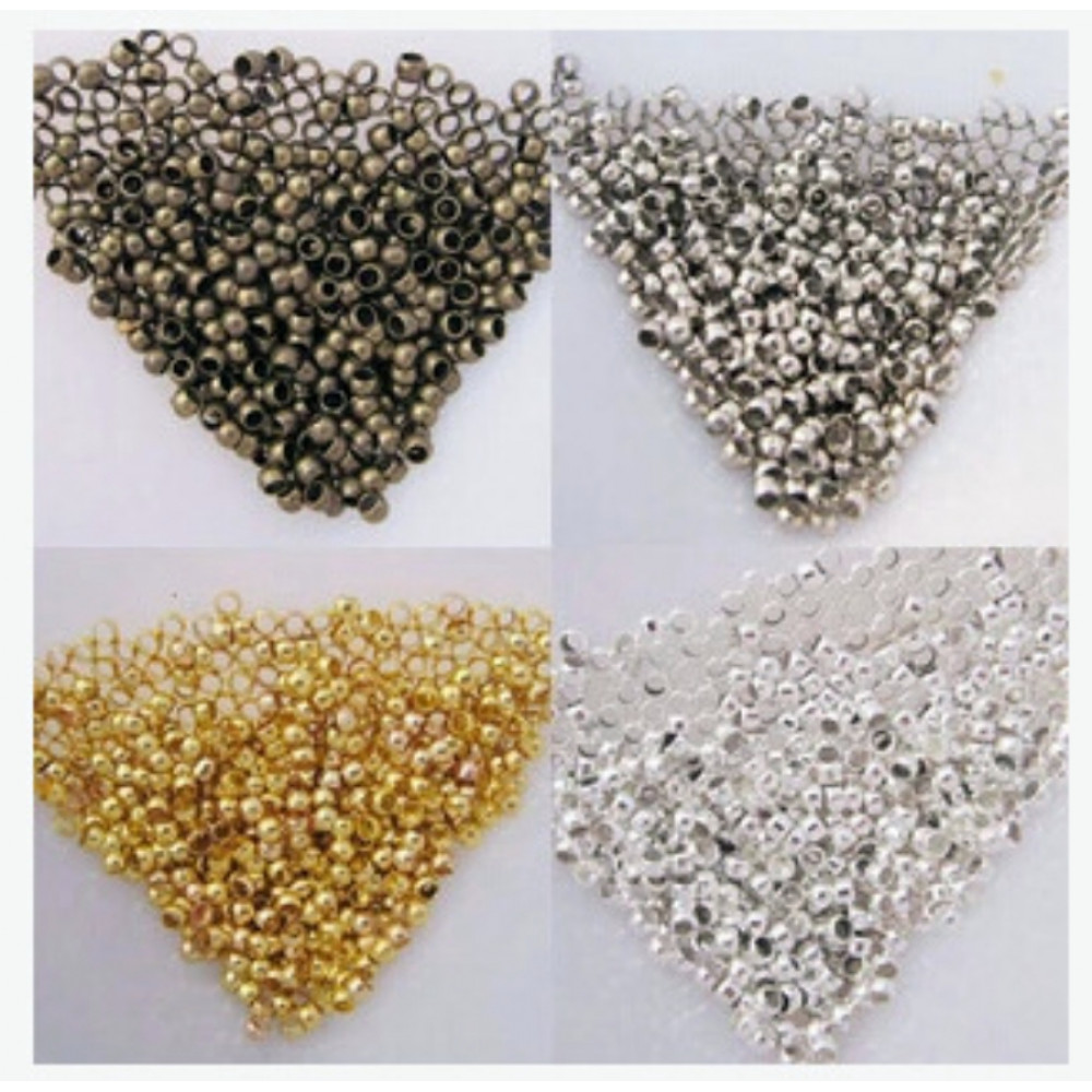 Небольшие металлические тонкостенные бусинки – круглые, с широким отверстием. Размер кримпа - около 2 мм, размер отверстия около 1,5 мм Используются для закрепления концов ювелирного тросика и при фиксации бусин «с промежутками». При сборке кримпы расплющиваются (зажимаются) кримпером или плоскогубцами для фиксации в определенном месте ювелирного тросика Цена за 1 шт.