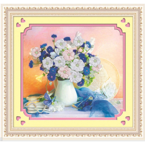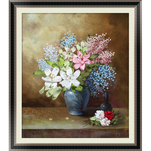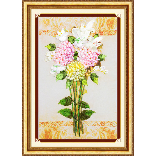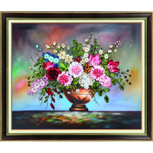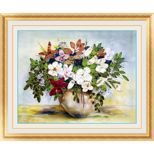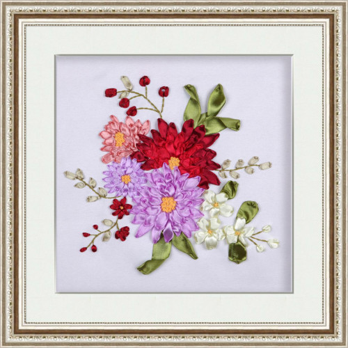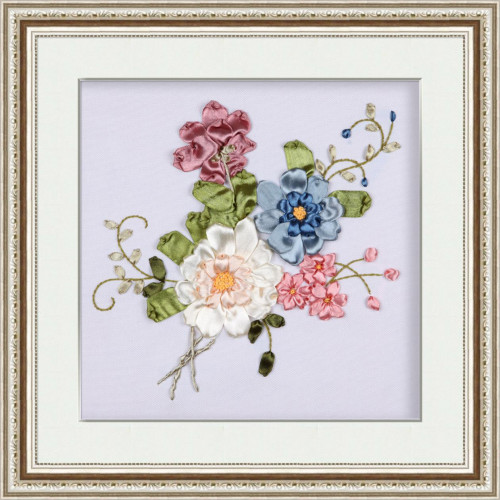 Готовый набор для рукоделия в технике вышивки атласными лентами. Размер 45х35 смВ набор вышивки..