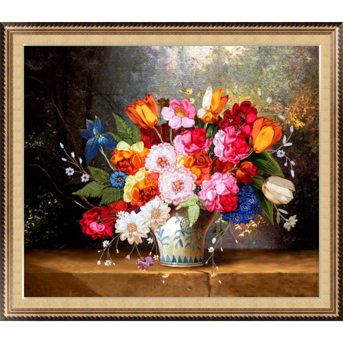 Набор для вышивки лентами Голландский натюрморт с тюльпанами и розамиРазмер принта 70*60 смВ набор в..