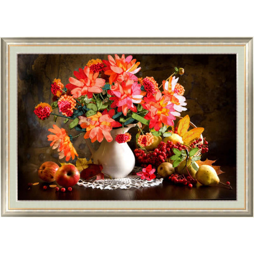 Набор для вышивки атласными лентами Осенний букет Размер 67*50 В набор входит плотная ткань с пр..