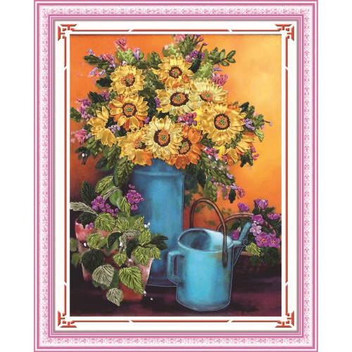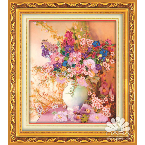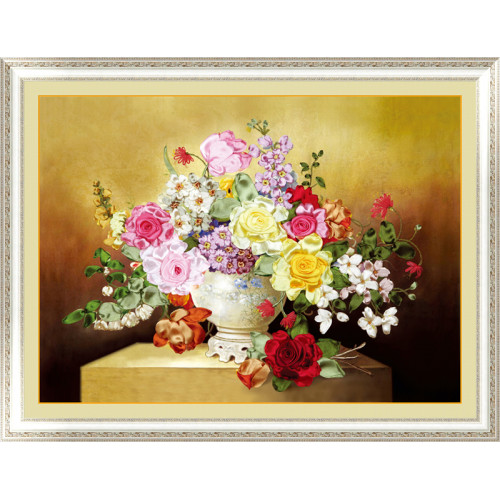 Набор для вышивки атласными лентами Цветы в вазе Размер 55*60 смВ набор входит плотная ткань с принт..