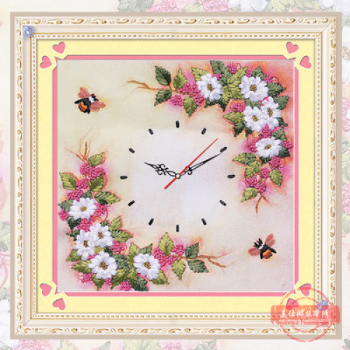 Набор для атласными вышивки лентами Часы с розамии Размер 30*40 смВ набор входит плотная ткань с при..