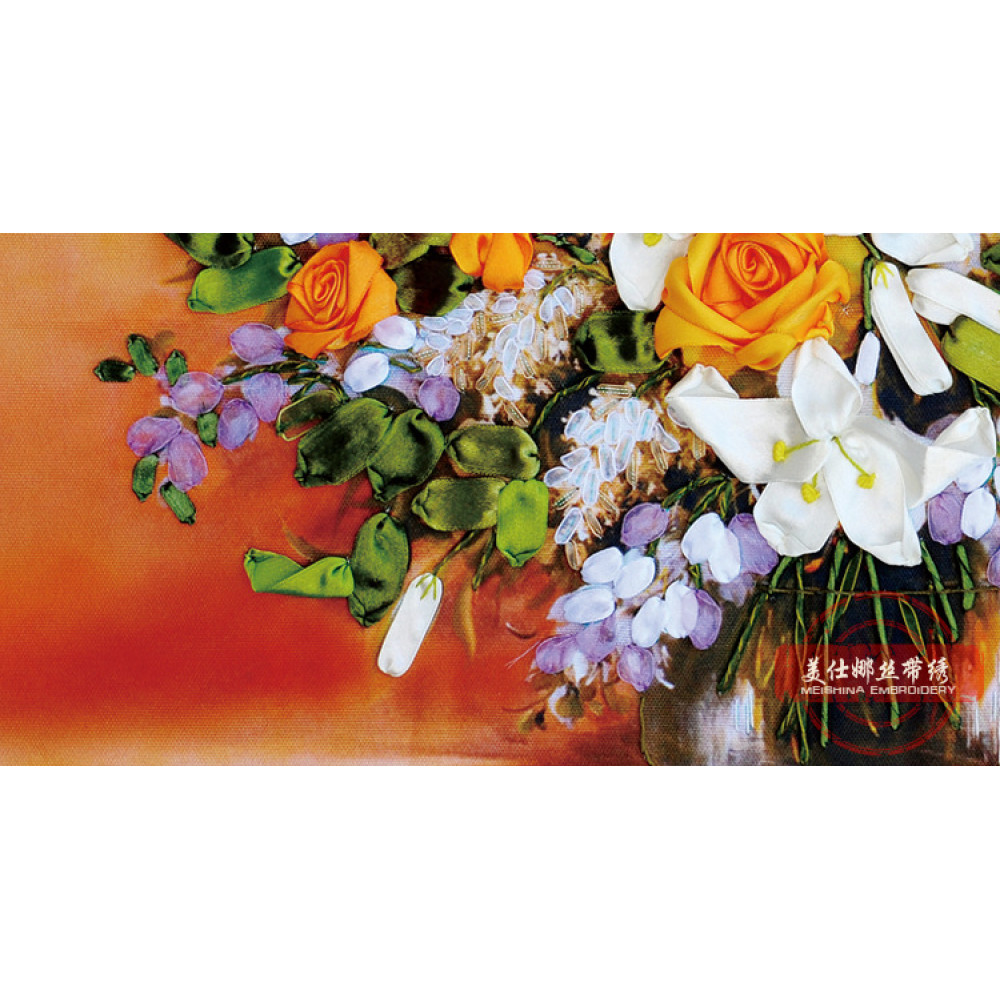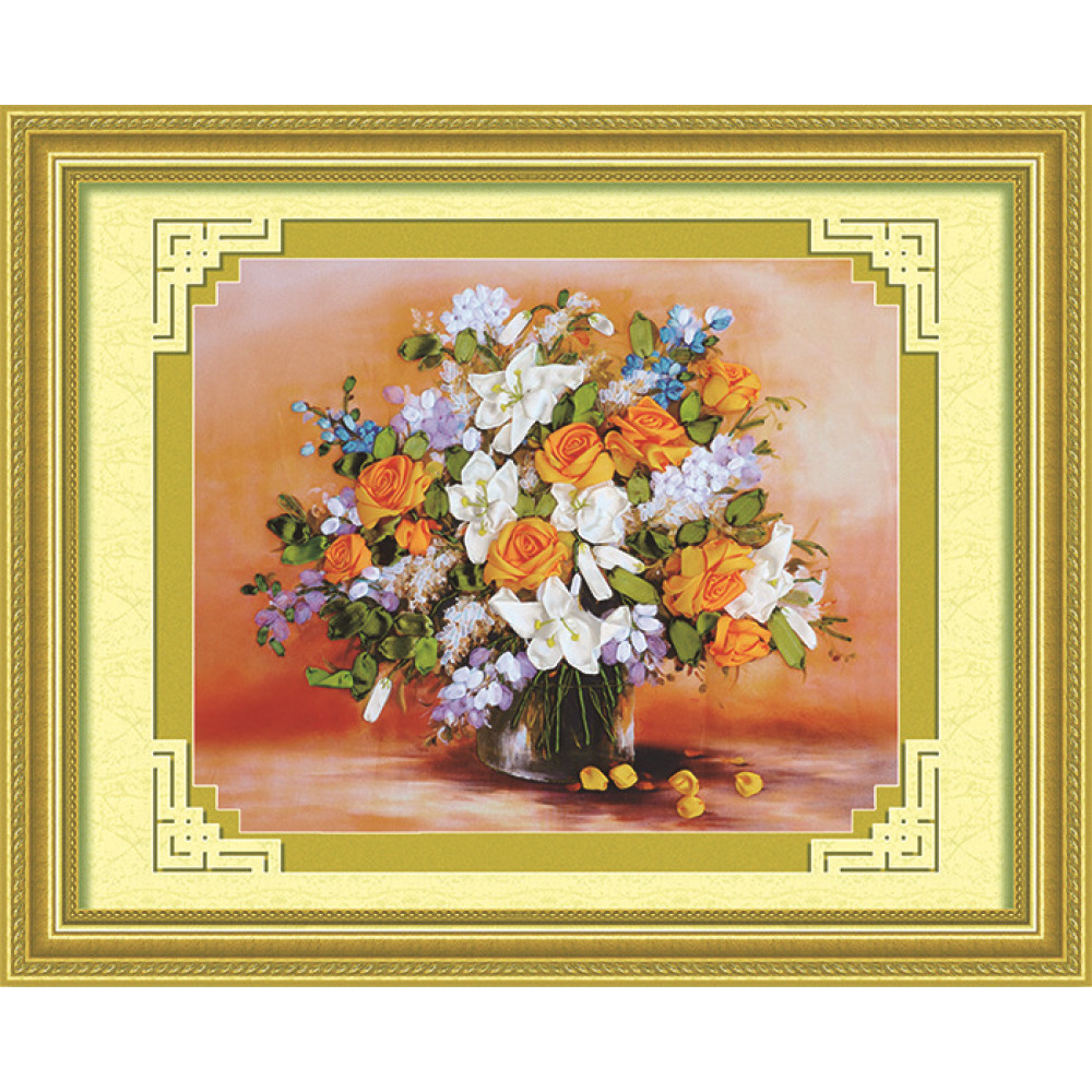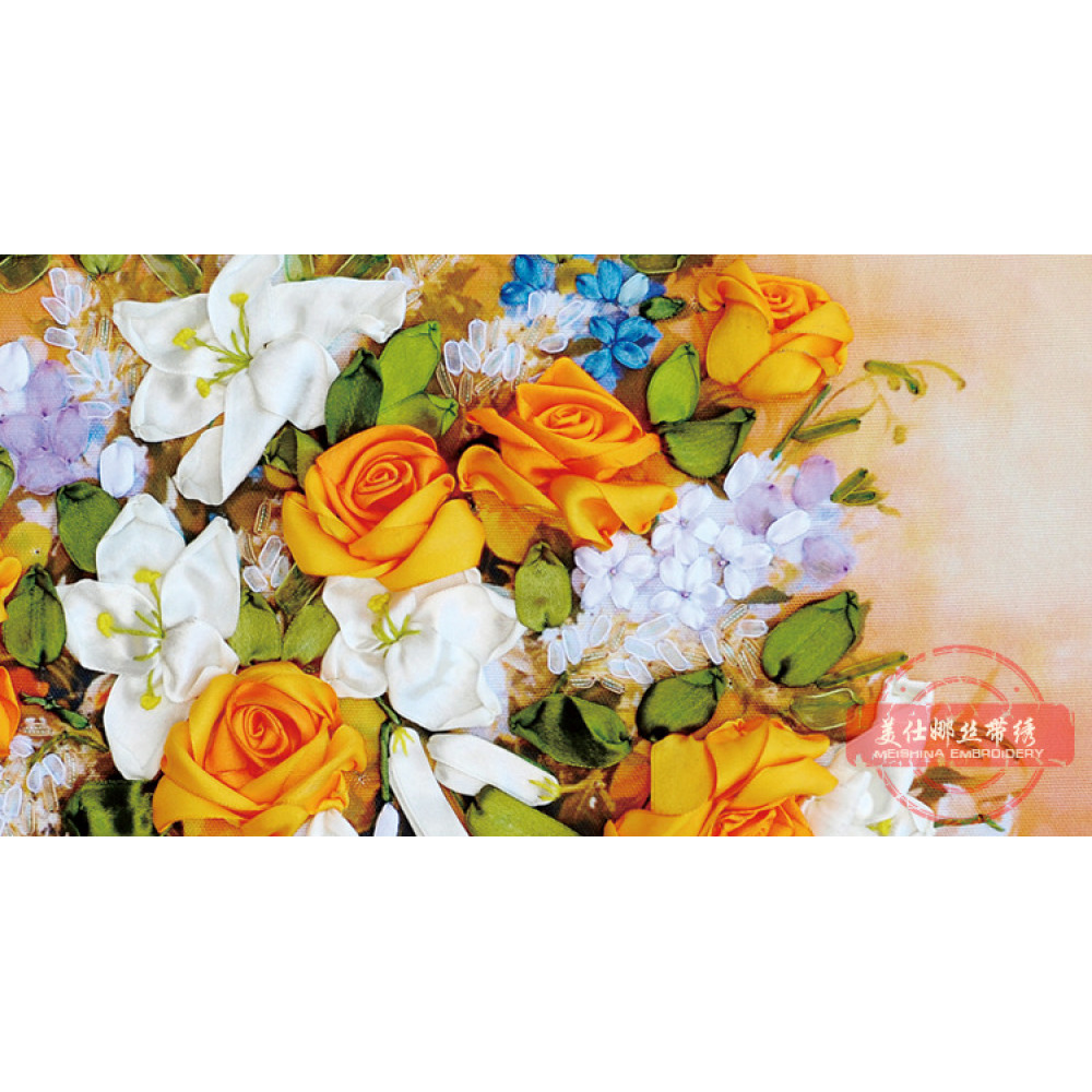 Набор для вышивки лентами Белые лилии и желтые розы