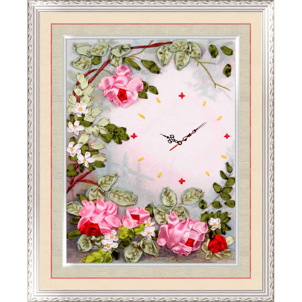 Набор для атласными вышивки лентами Часы с розамии Размер 30*40 см
