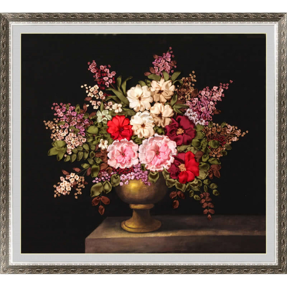 Набор для вышивки атласными лентами Цветы в вазе Размер 55*60 см