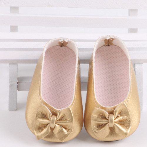 Миниатюрные балетки из золотой экокожи, с бантом.Размеры туфель по подошве:длина 6,8 смширина 3,5 см..