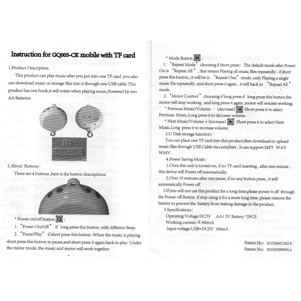 TF-карту (Mini SD). На этом музблоке Вы можете слушать любые мелодии в формате