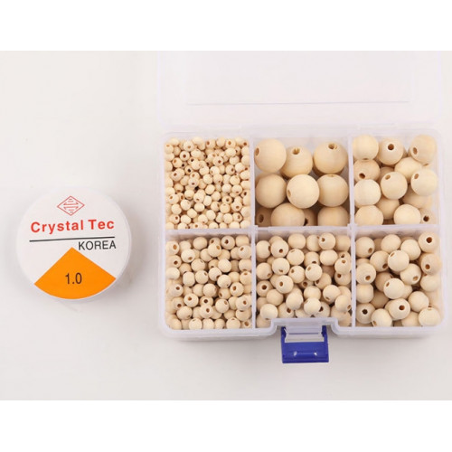 Набор деревянных бусин различного размера.Поставляется в пластиковом органайзере. В комплект входит ..