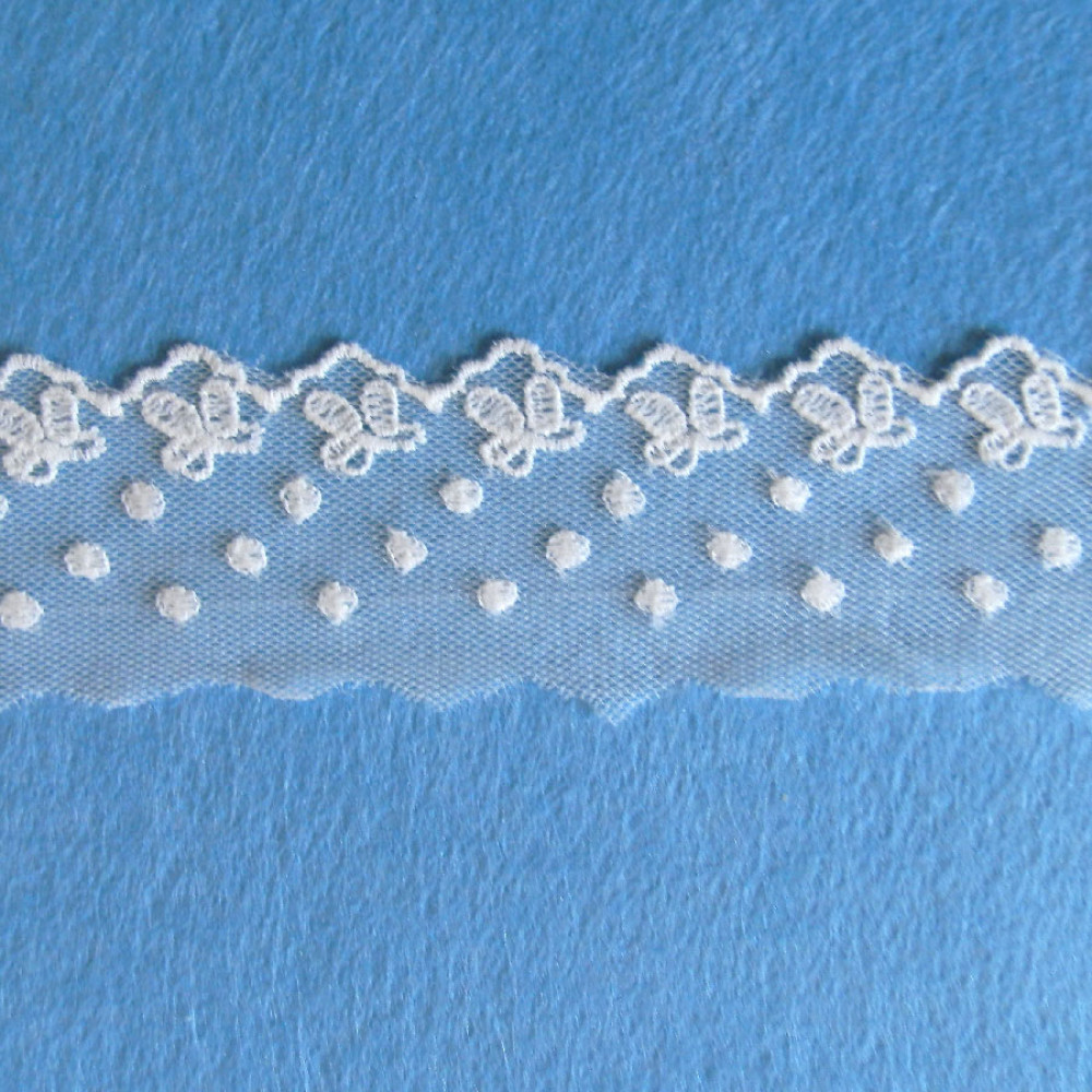 Белое шитье на сетке, изысканный нежный вышитый на мягком сетчатом материале рисунок. Декоративная кружевная тесьма подходит для самых разных видов рукоделия - при пошиве одежды, для декорирования в скрапбукинге, в куклоделии и т.д.