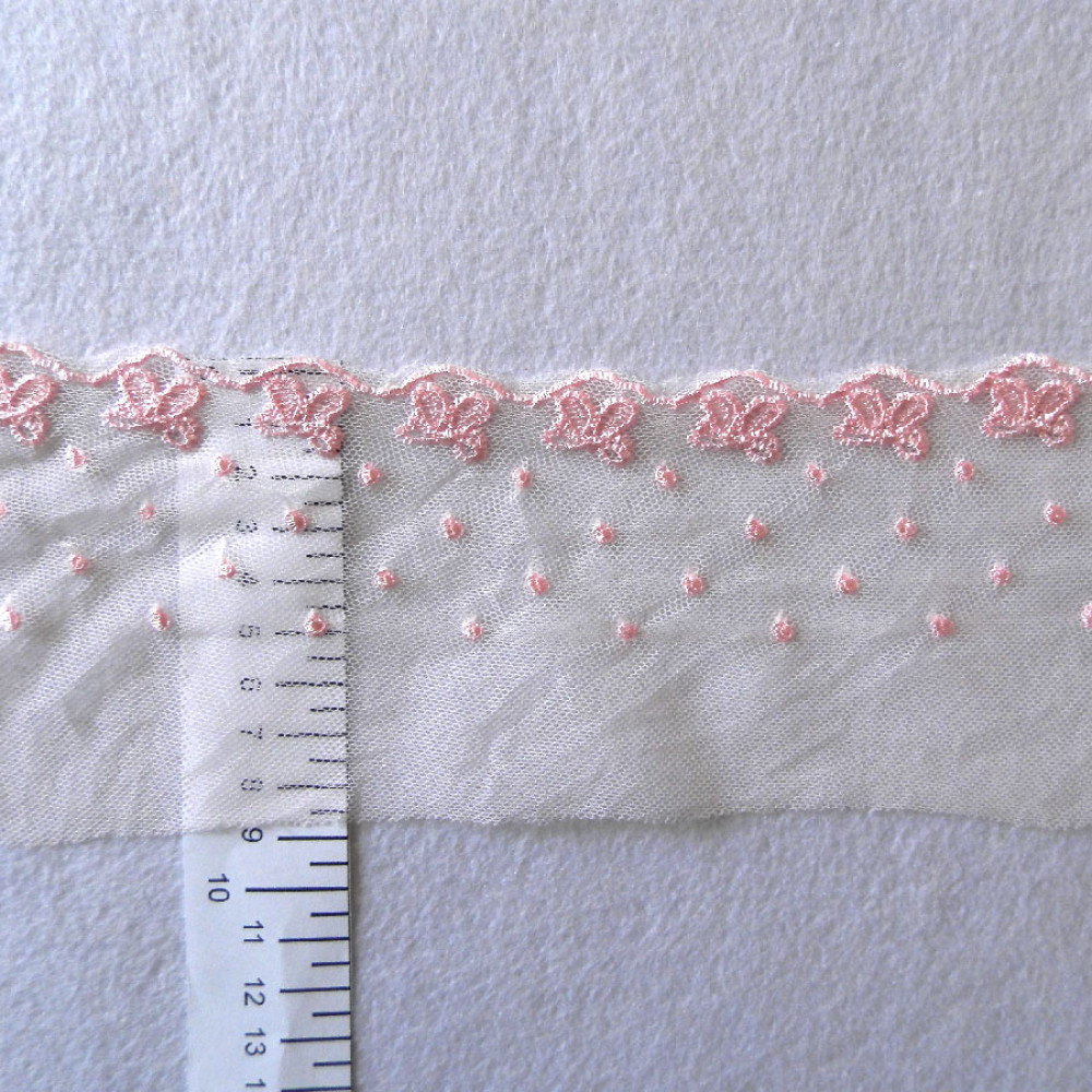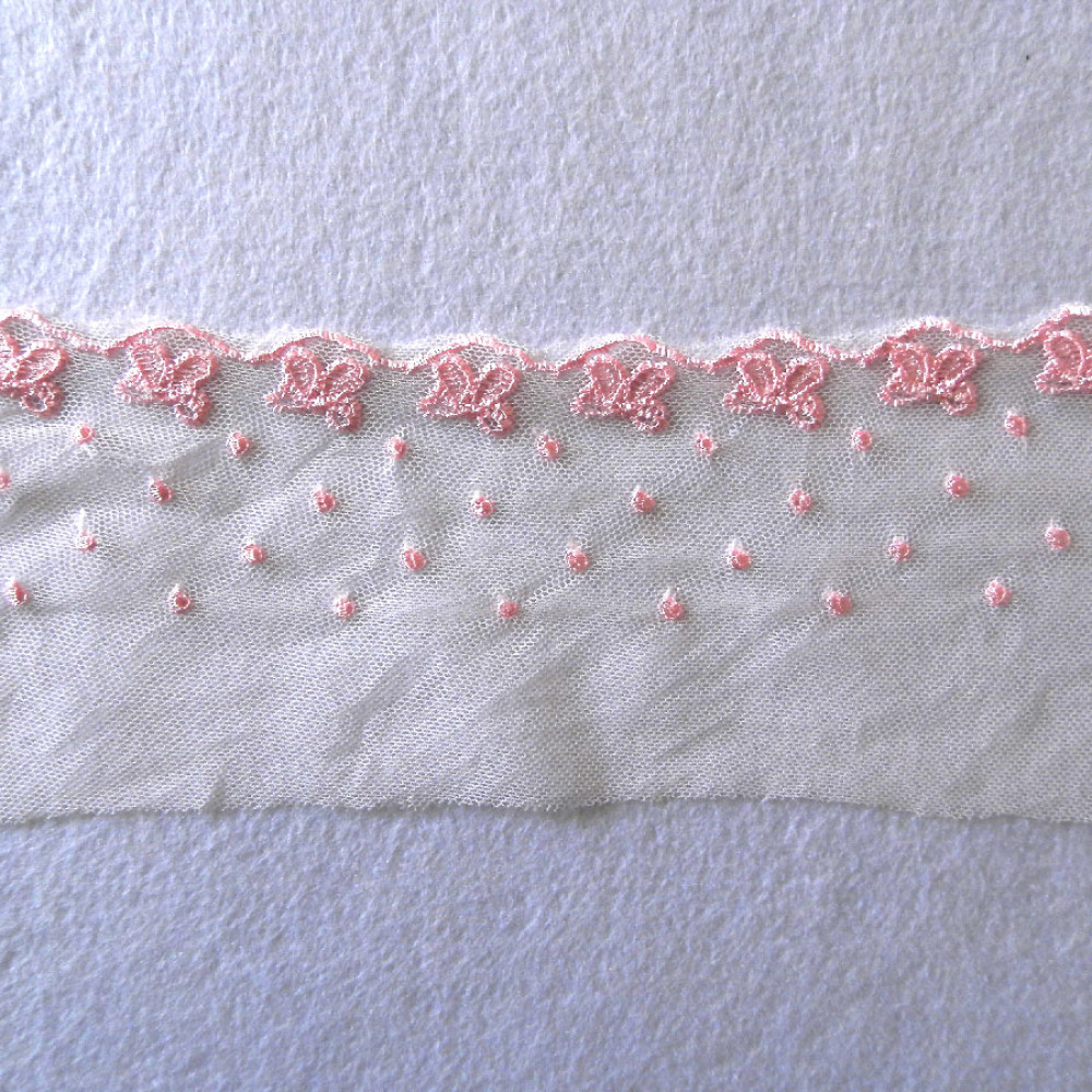 Розовое шитье на сетке, изысканный нежный вышитый на мягком сетчатом материале рисунок. Декоративная кружевная тесьма подходит для самых разных видов рукоделия - при пошиве одежды, для декорирования в скрапбукинге, в куклоделии и т.д.
