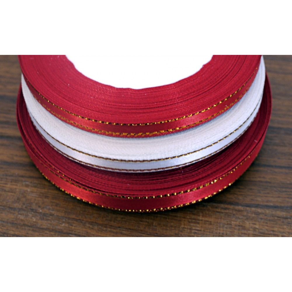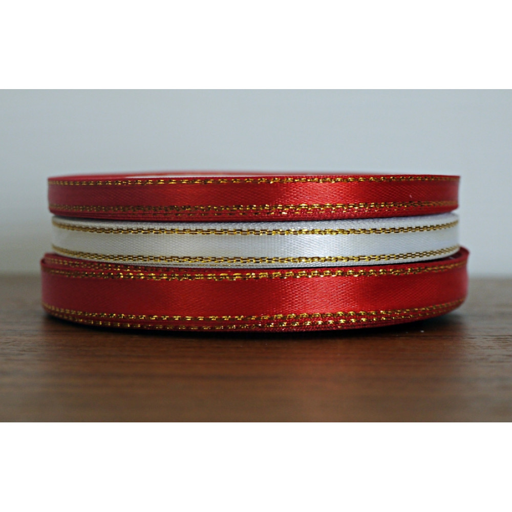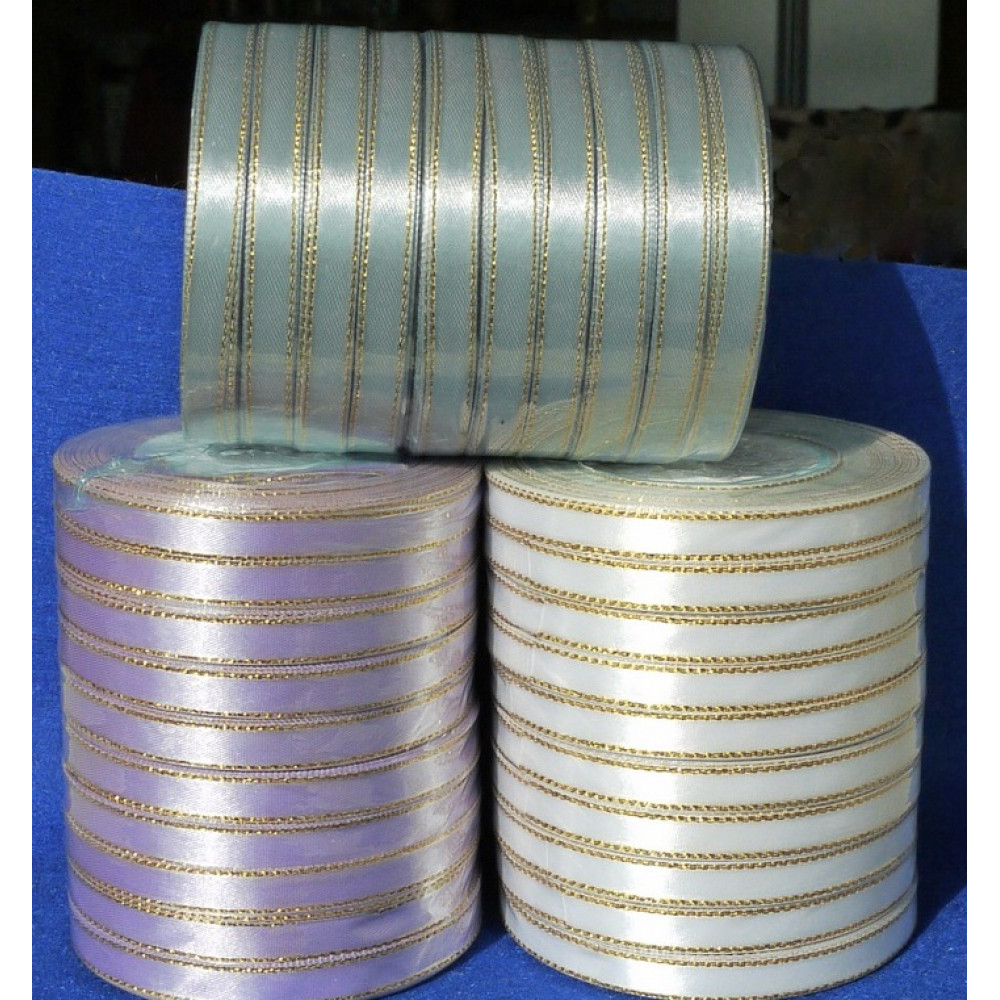 Лента атласная с золотым бордюром 10 мм