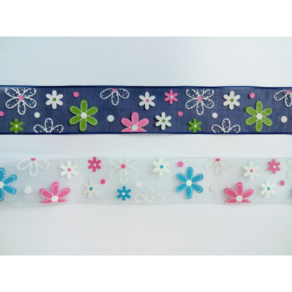 Лента органза 25 мм принт Цветочки 2
