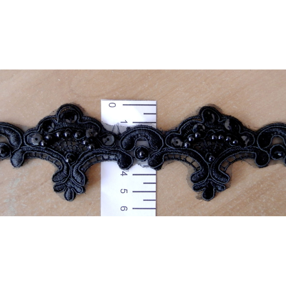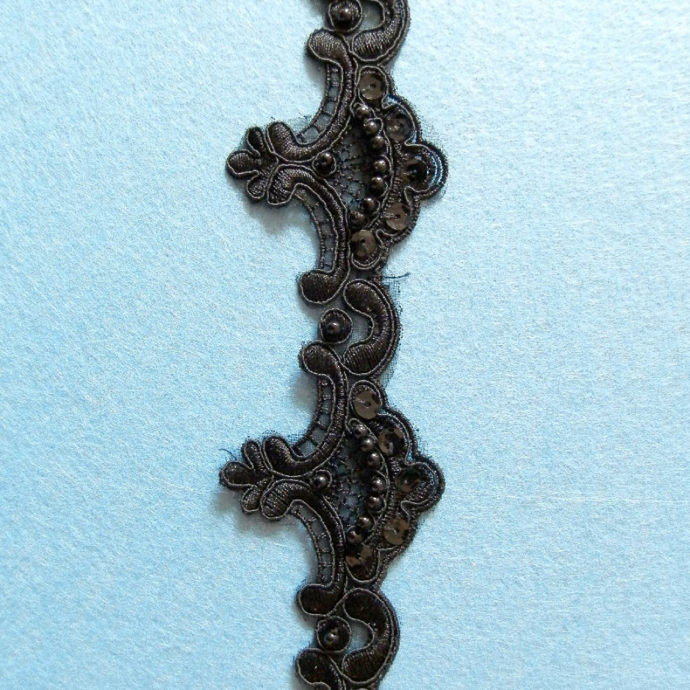 Тесьма декоративная с бусинами Черная