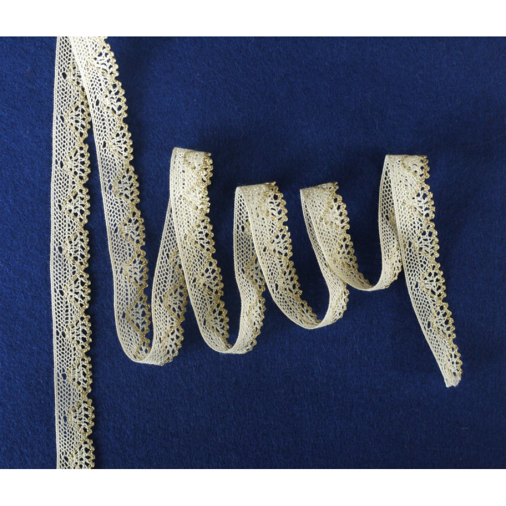 Нарядная нежная кружевная тесьма (хлопок 100%) кремового цвета с орнаментом из люрексовой нити.