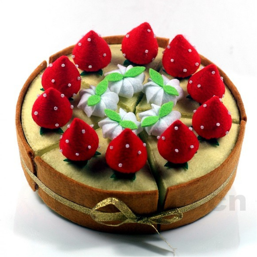 Вырубка из фетра Торт кусочками медовый с клубникой
