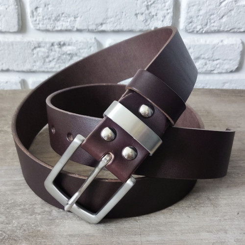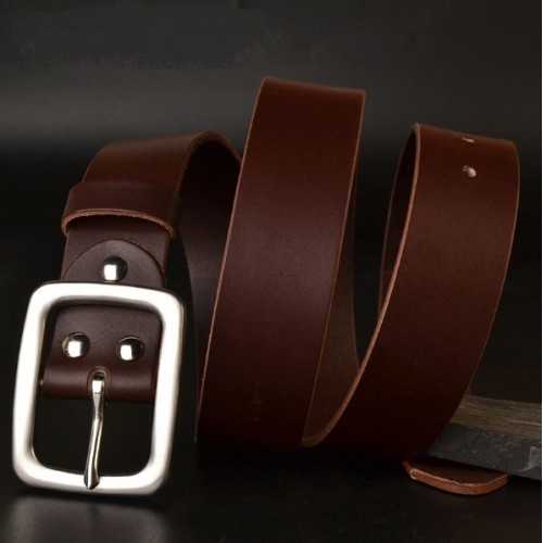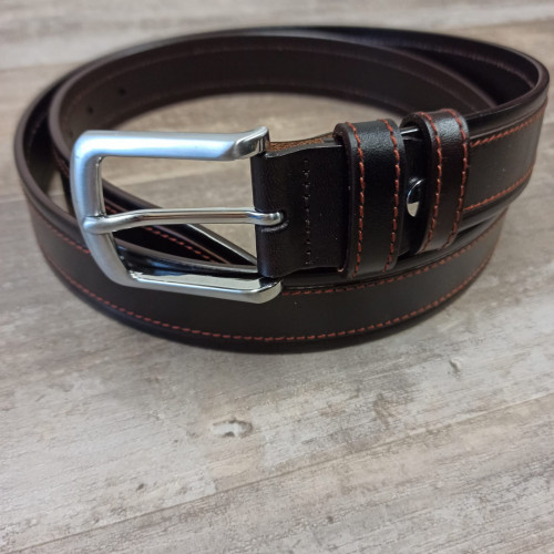 Ремень ручной работы из натуральной кожи с классической пряжкой, элегантной фаской, прошитый по края..