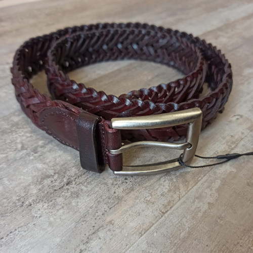 Плетеный ремень из натуральной кожи и вощеного хлопкового шнура с классической металлической пряжкой..