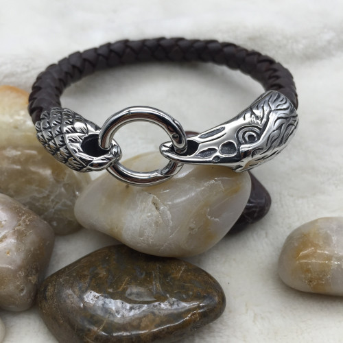 Готовый кожаный браслет из натуральной кожи. Браслет выполнен из плетеного шнура круглого сечения ди..