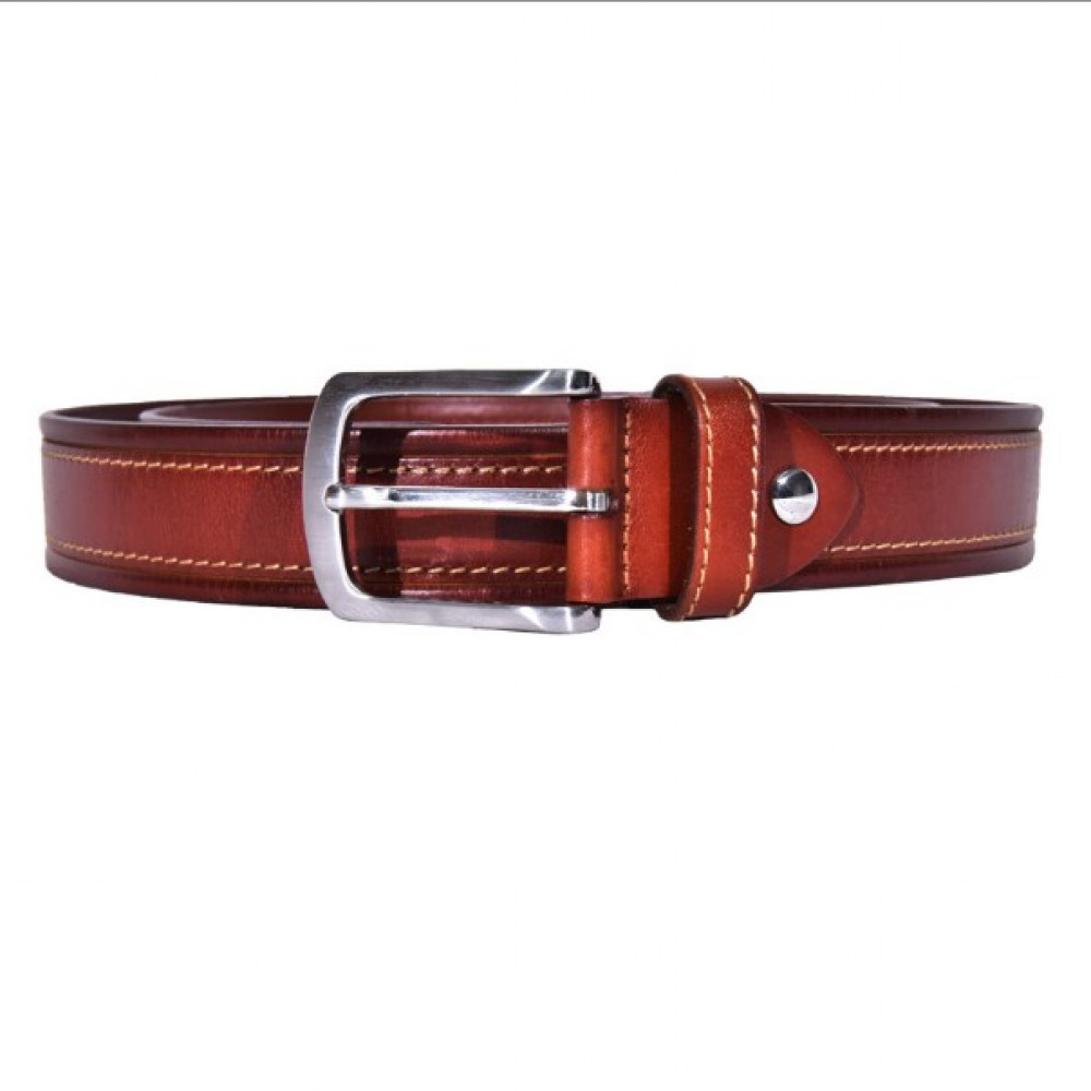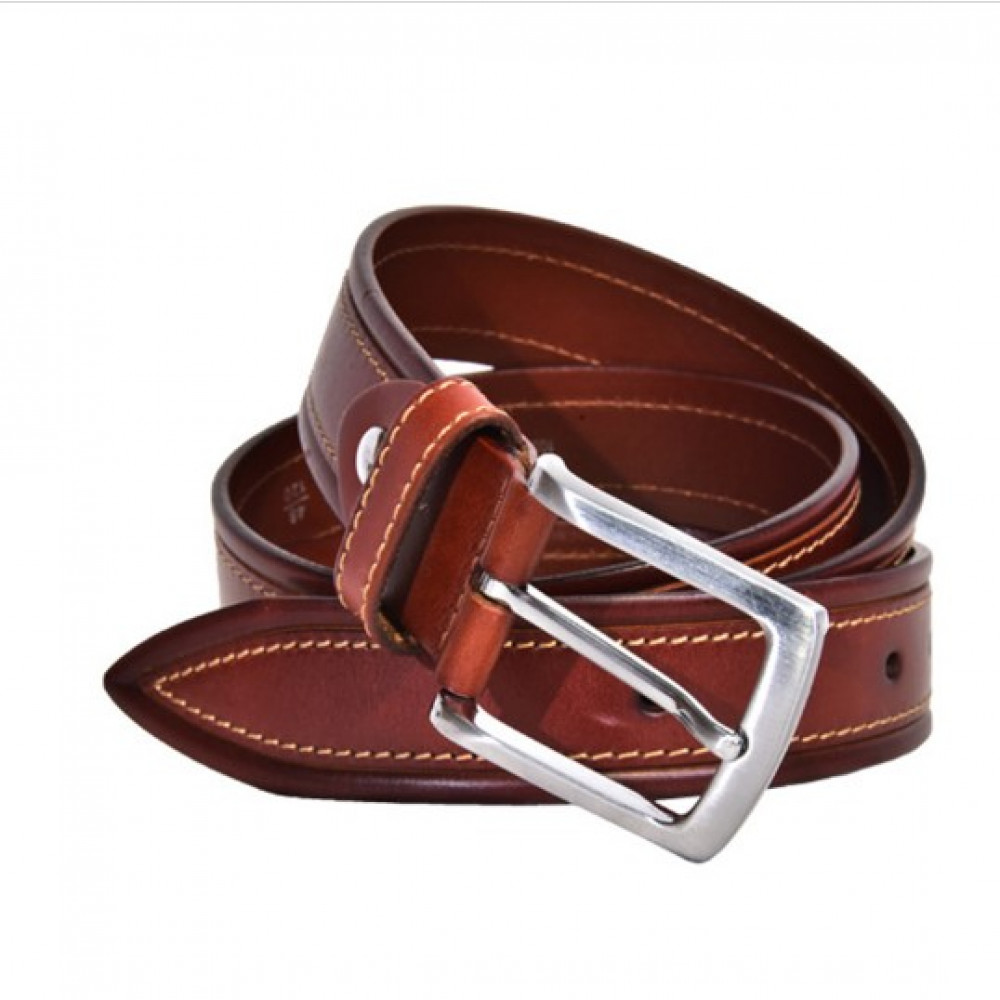 Ремень ручной работы из натуральной кожи с классической пряжкой, элегантной фаской, прошитый по краям. Выполнен из 100% натуральной итальянской кожи высокого качества. Натуральная кожа КРС - высокопрочный и износостойкий материал, который прослужит Вам много лет. Благодаря прошивке с обеих краев модель отличается повышенной устойчивостью к деформации.