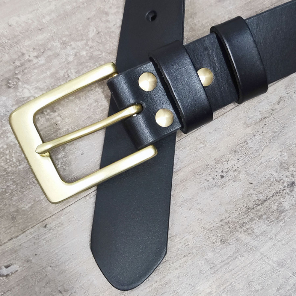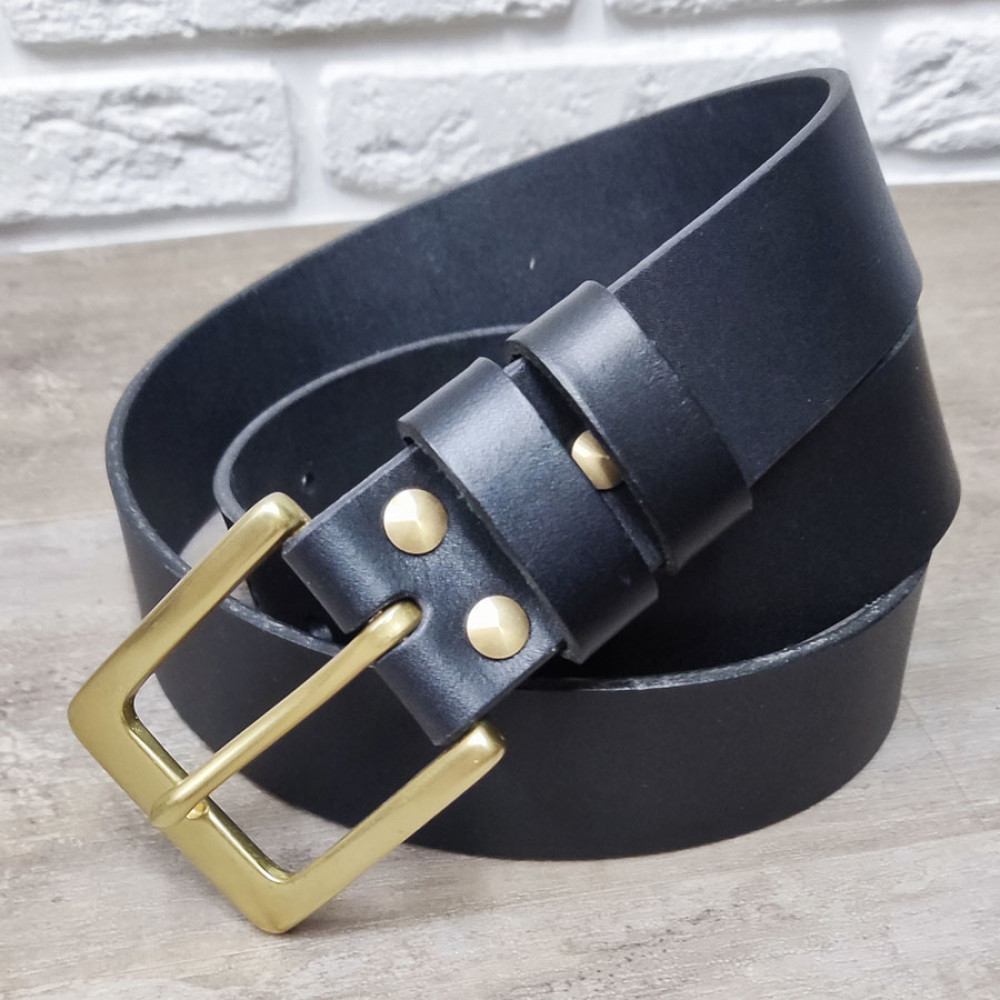 Ремень кожаный 38 мм толщ. 4 мм пряжка латунная Черный